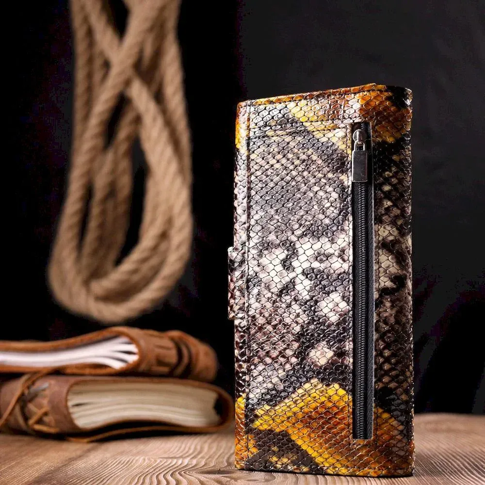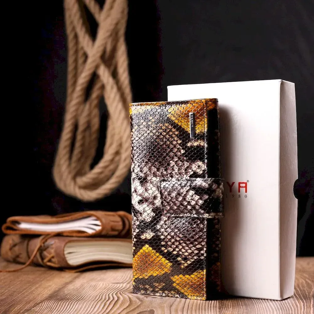 Красивый женский кошелек из натуральной фактурной кожи под змею KARYA 21029 Разноцветный