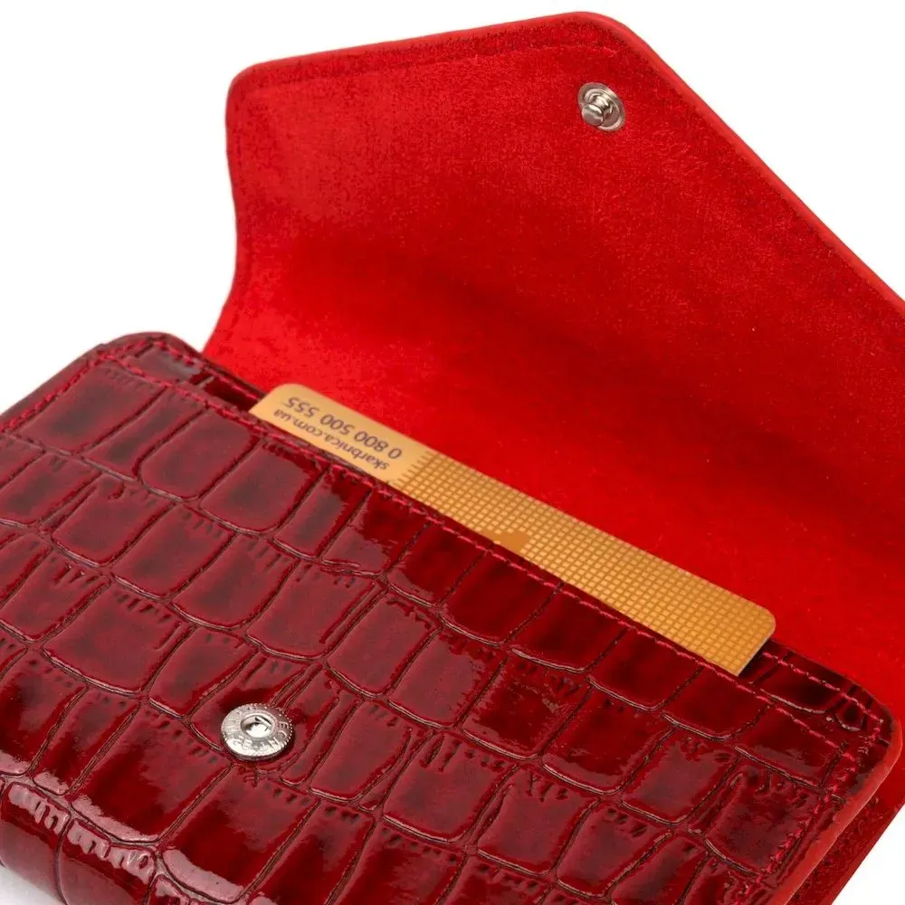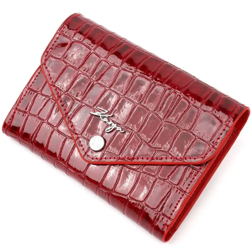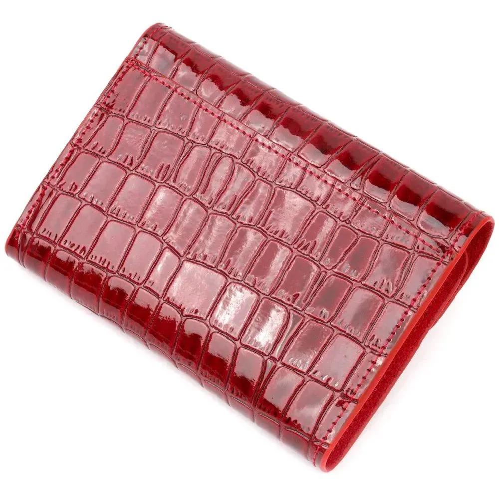 Лакированный горизонтальный женский кошелек с монетницей из натуральной кожи под крокодила KARYA 21073 Бордовый