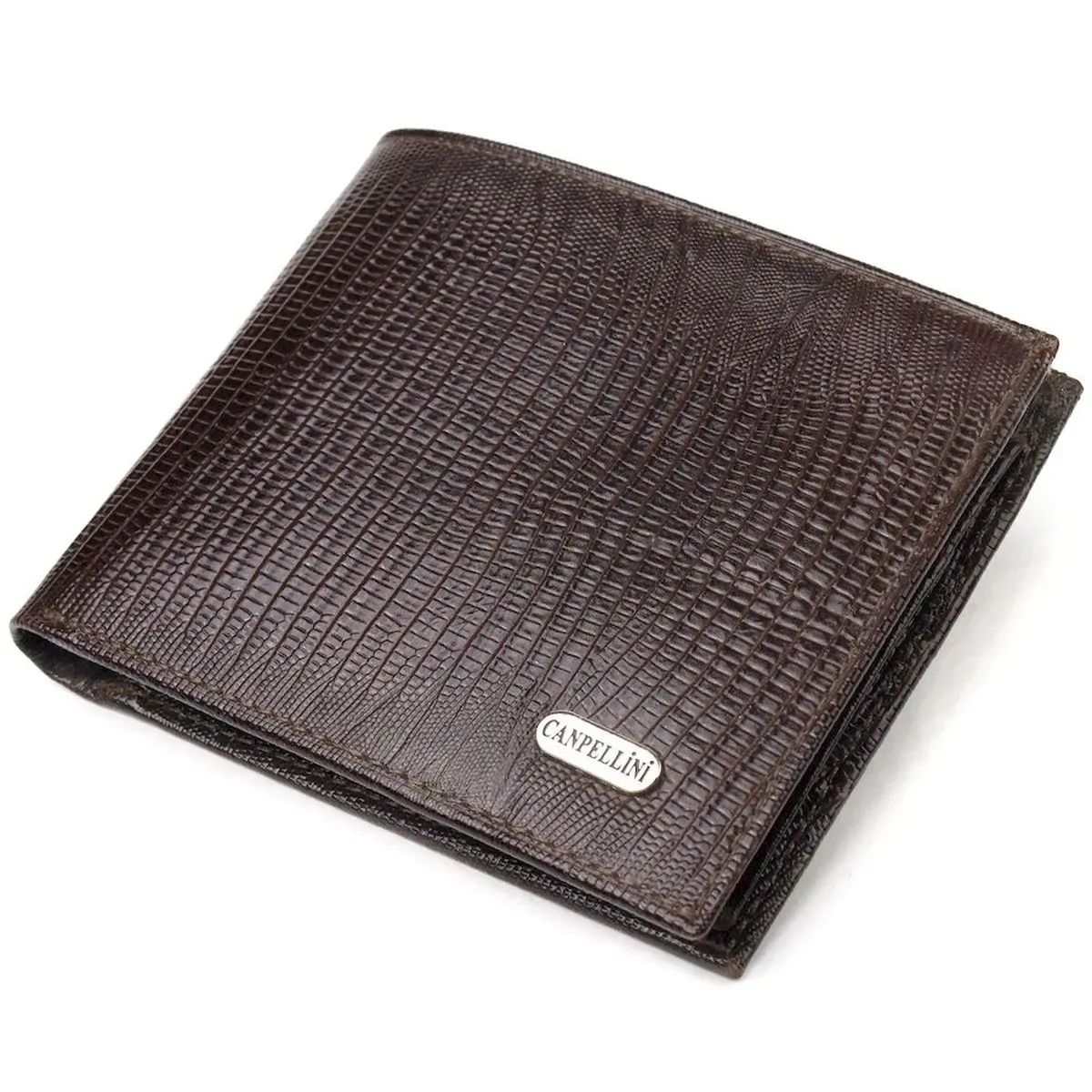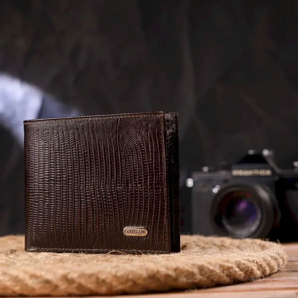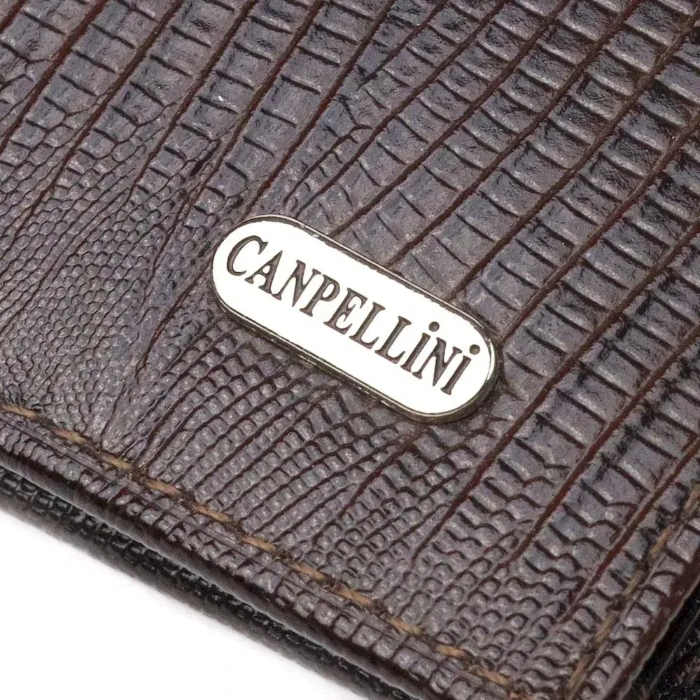 Лакированный кошелек для мужчин в два сложения из натуральной фактурной кожи CANPELLINI 21585 Коричневый