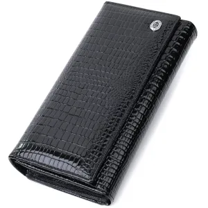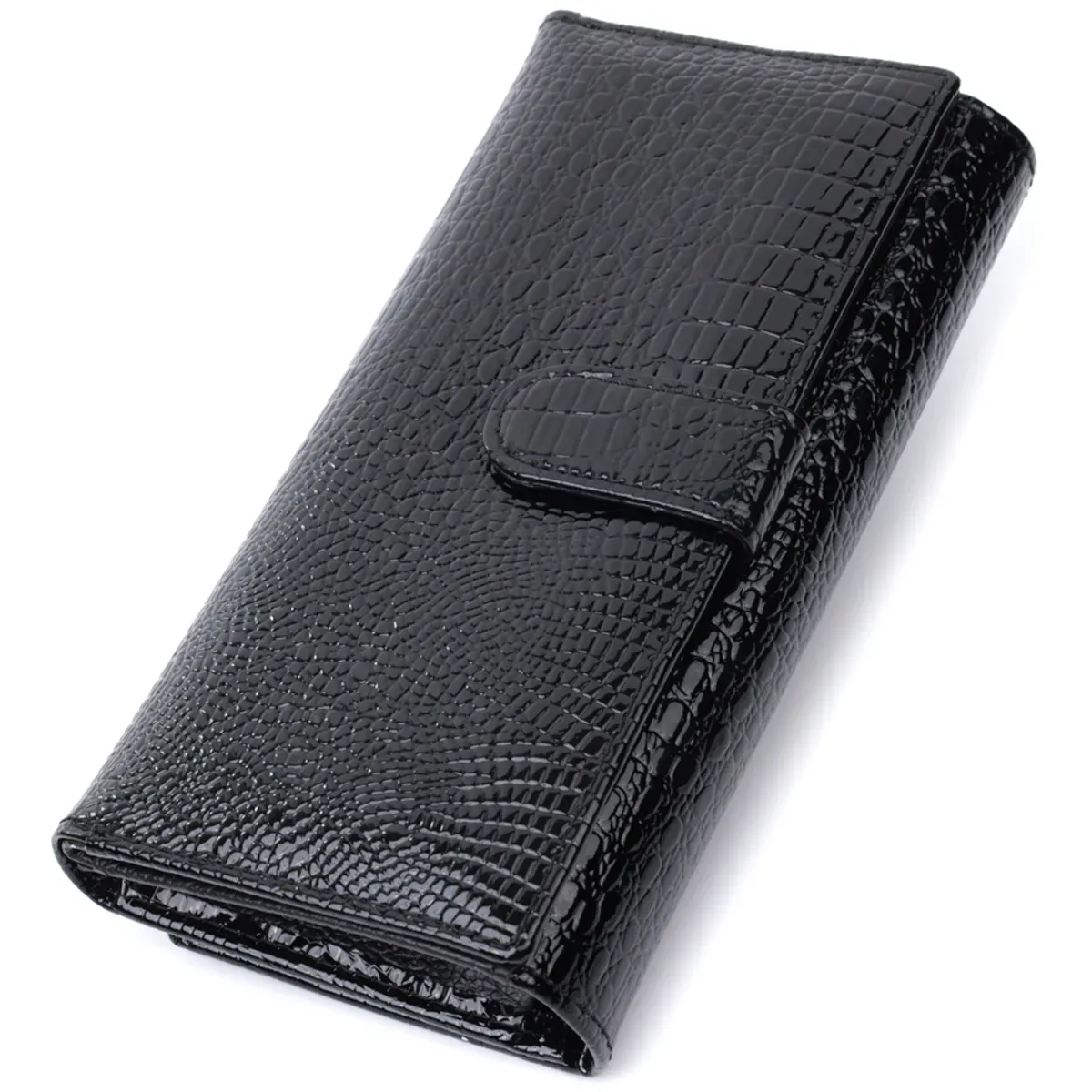 Лакированный кожаный кошелек с блоком для кредитных карт ST Leather 22683 Черный