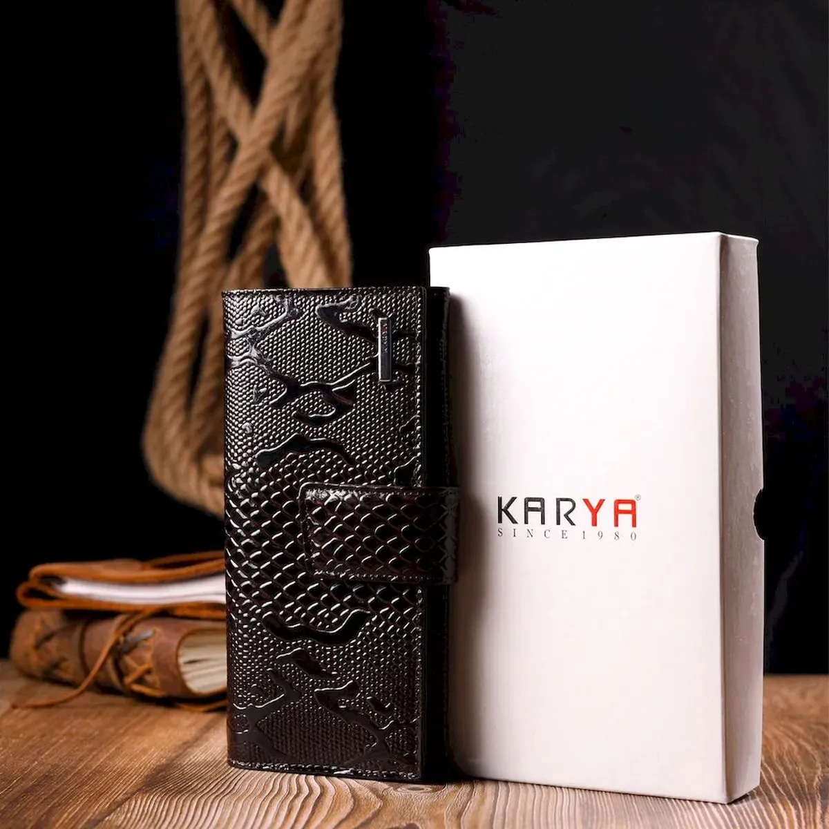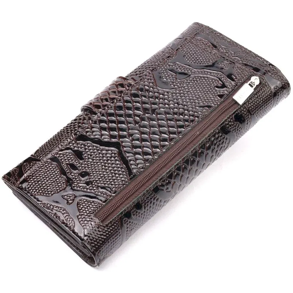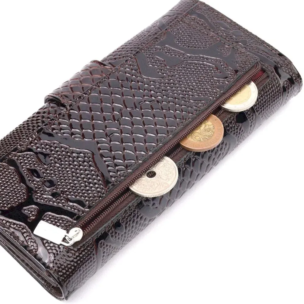 Лакированный женский кошелек из натуральной фактурной кожи KARYA 21025 Коричневый