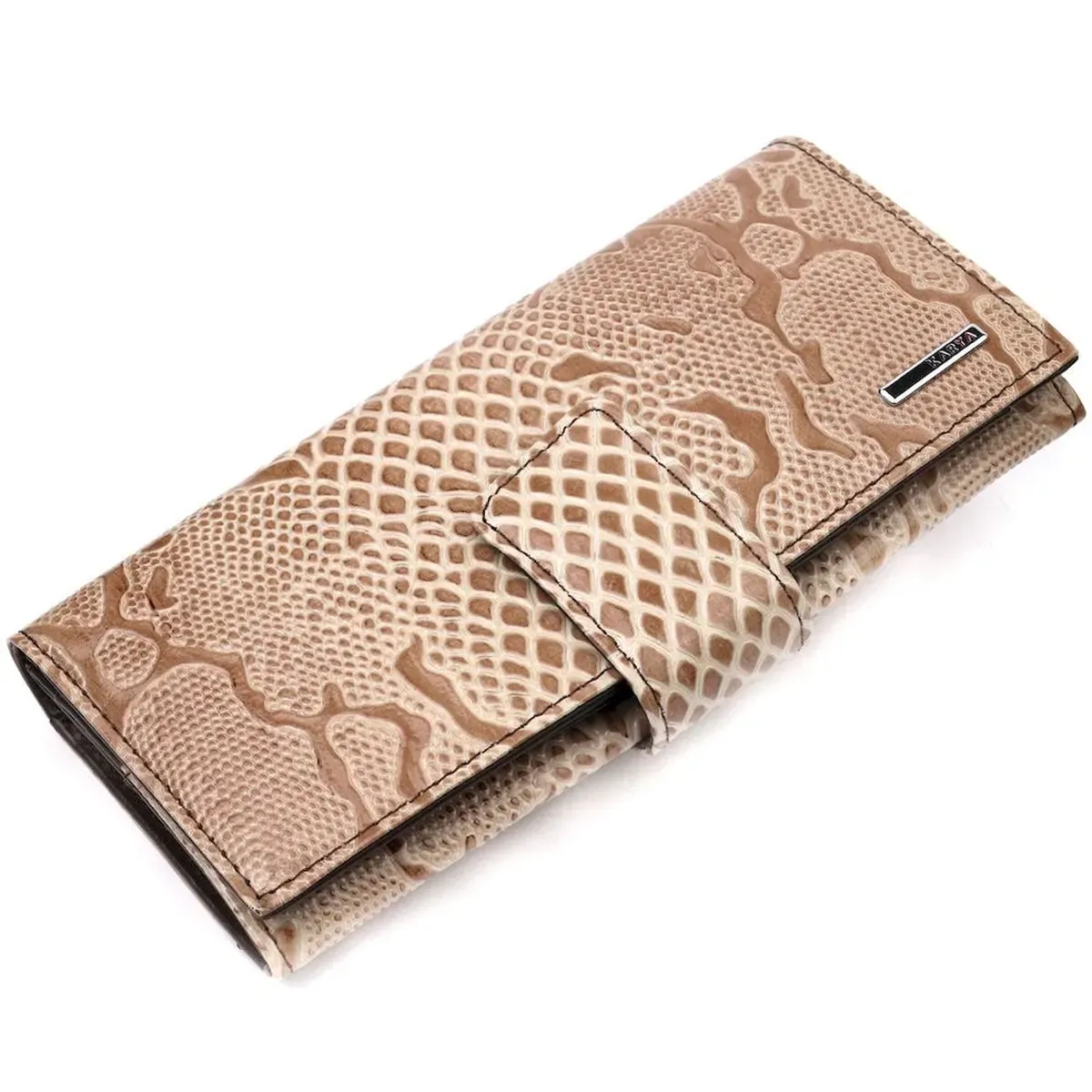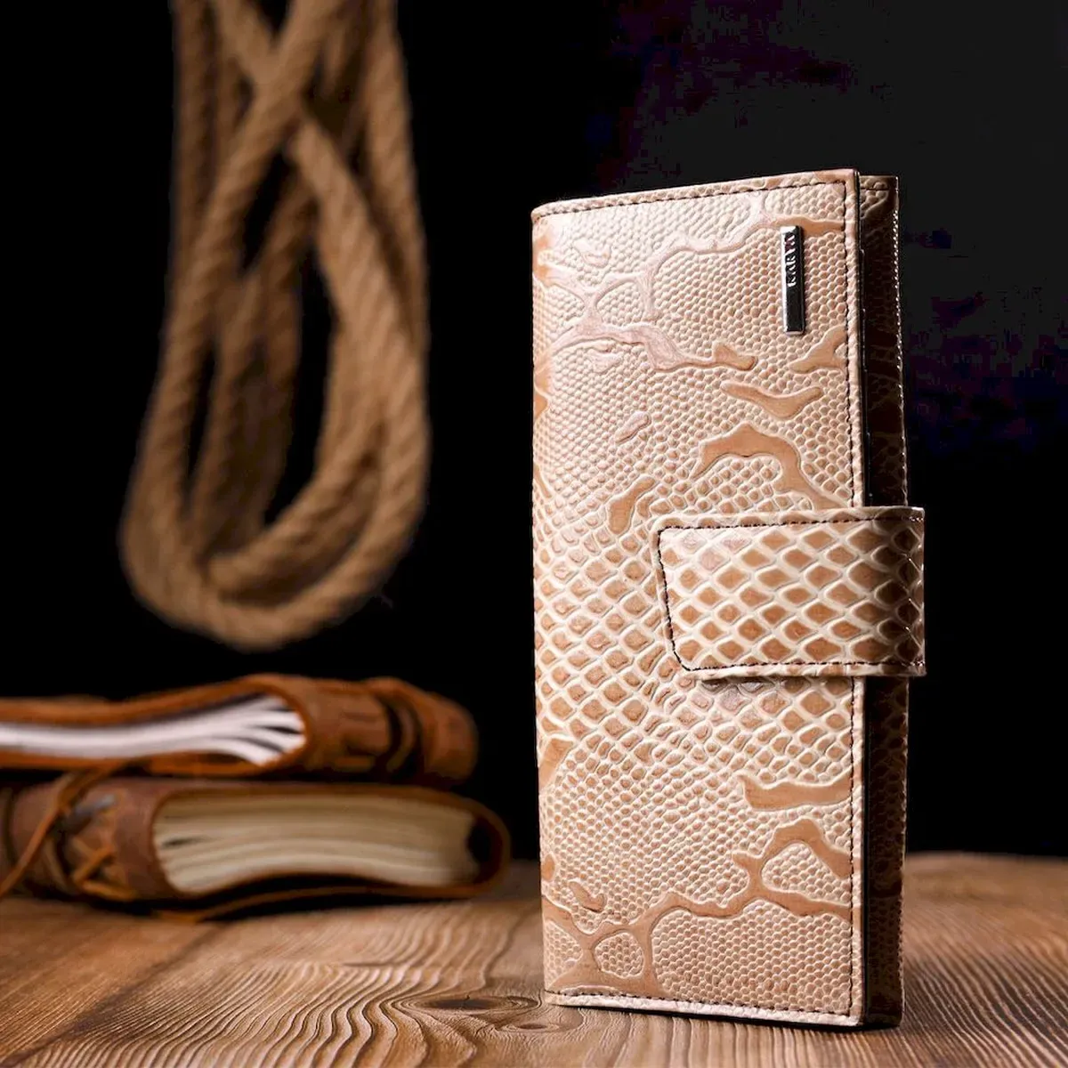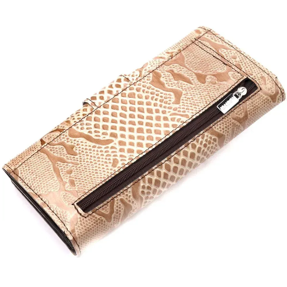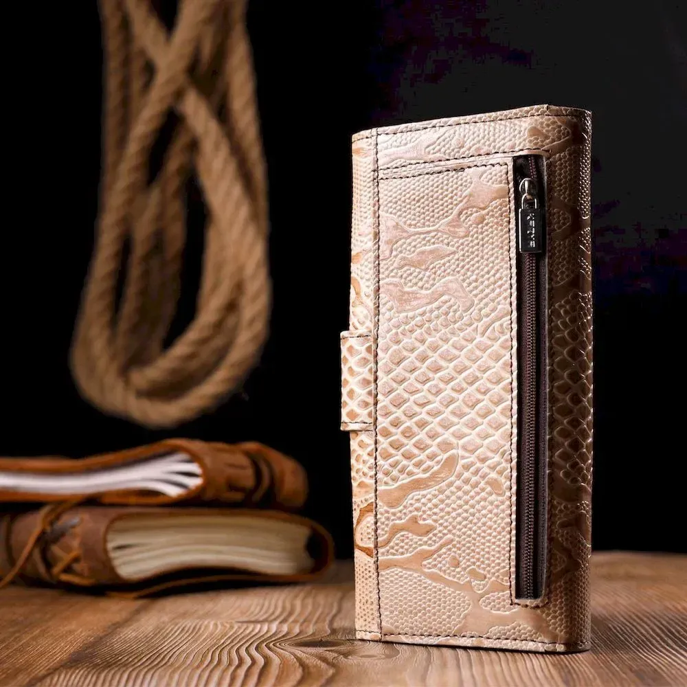 Лакированный женский кошелек из натуральной фактурной кожи KARYA 21026 Бежевый