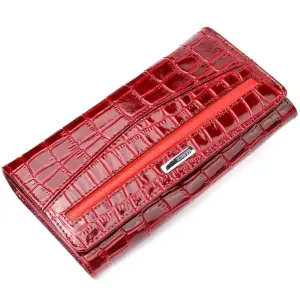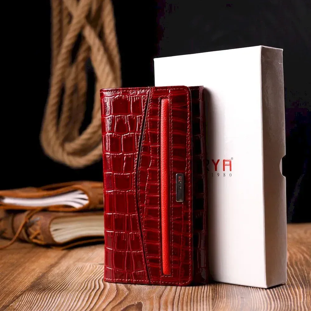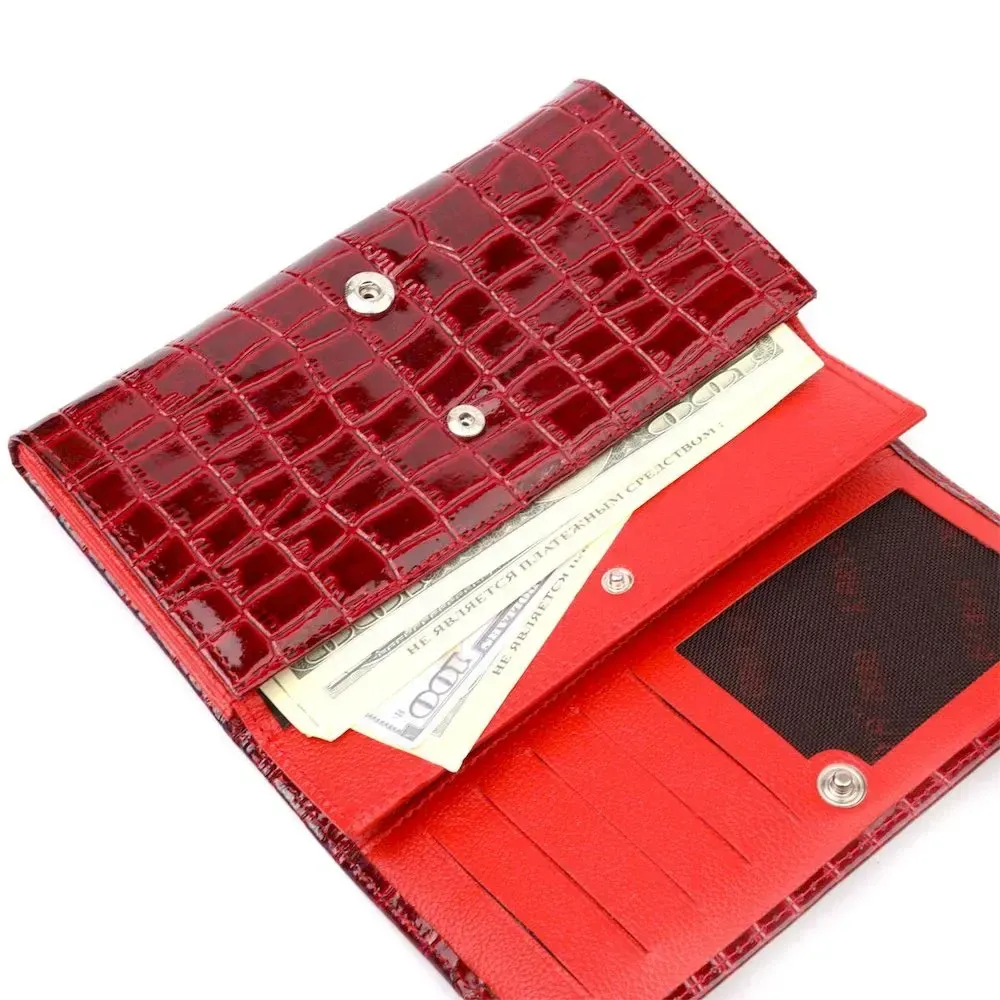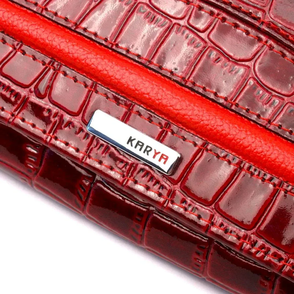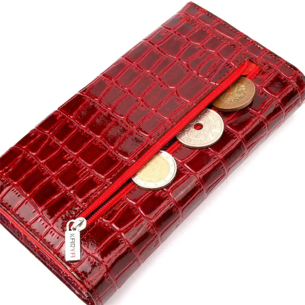 Лакированный женский кошелек из натуральной фактурной кожи под крокодила KARYA 21022 Красный