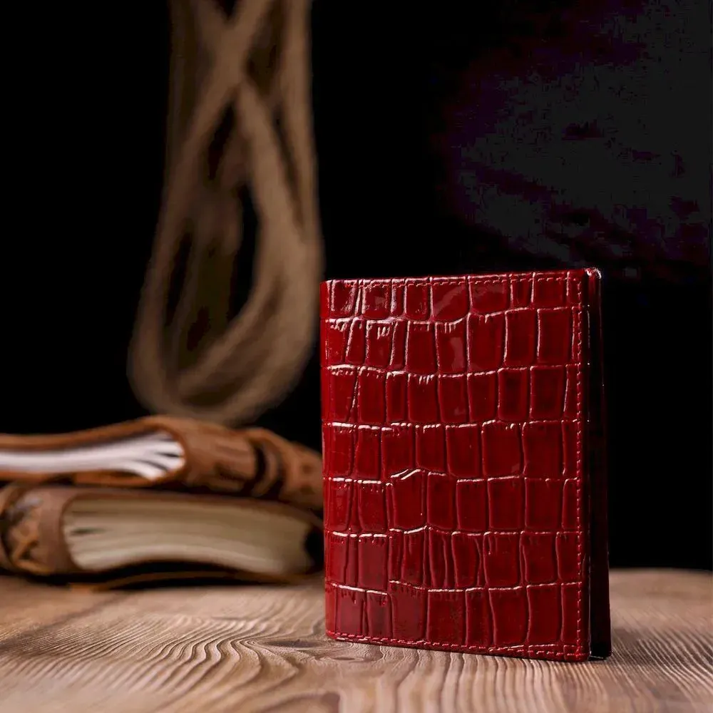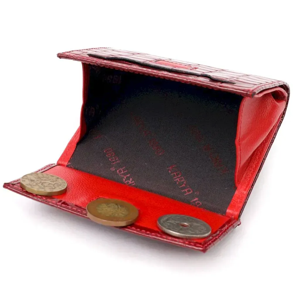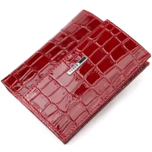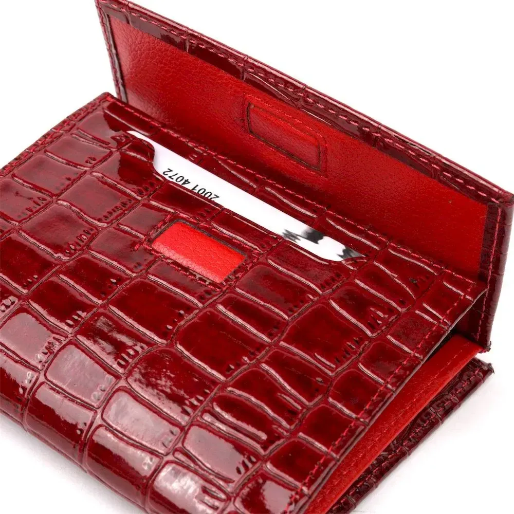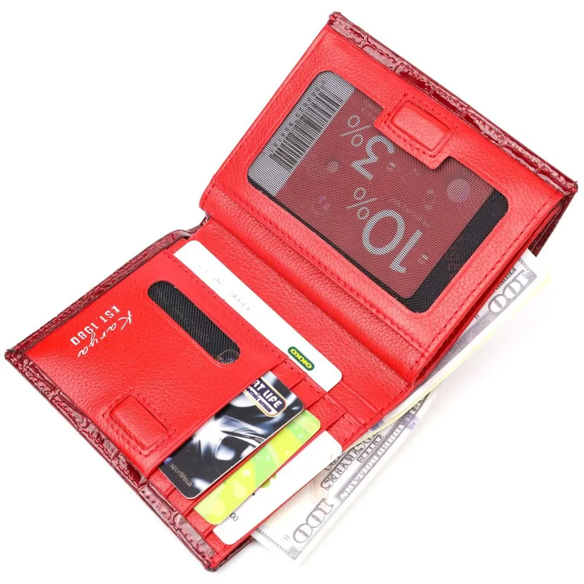 Лакированный женский кошелек на магните из натуральной кожис тиснением под крокодила KARYA 21186 Красный