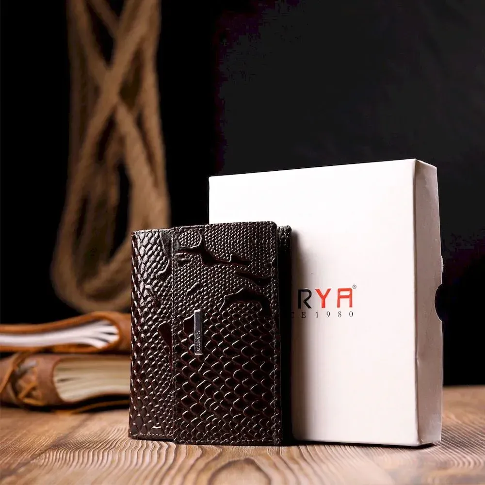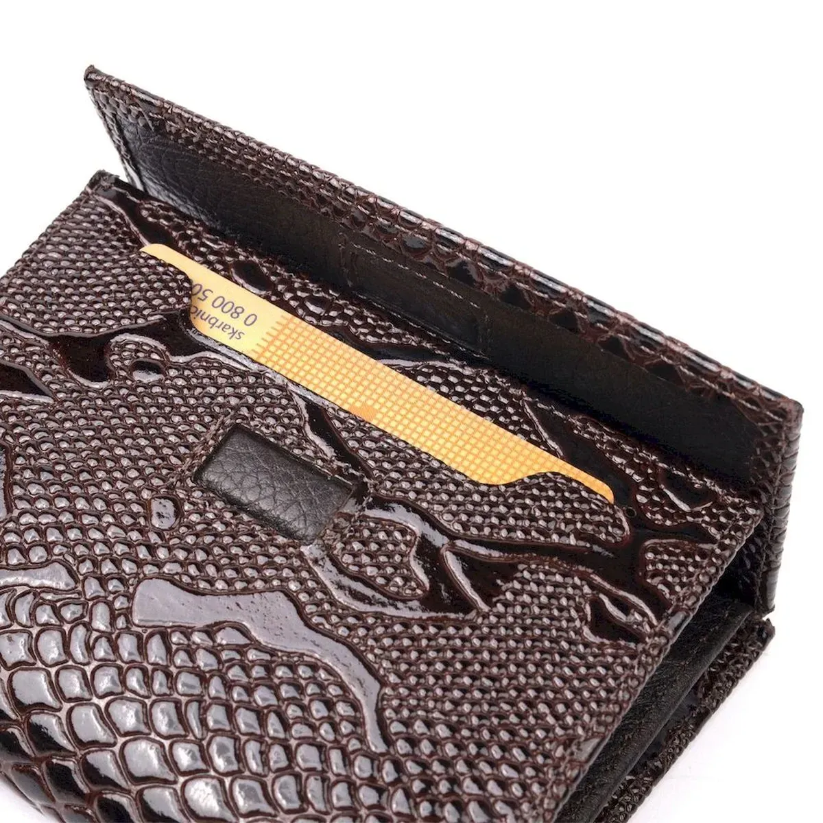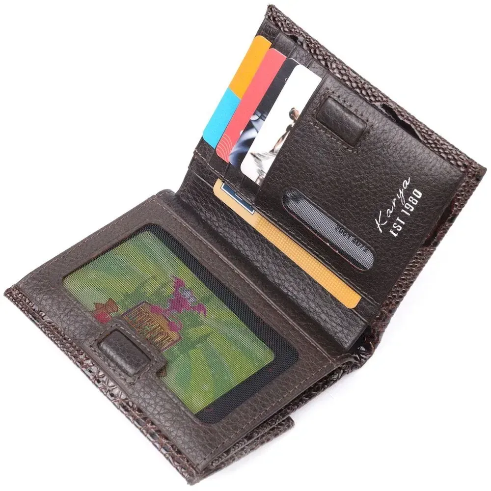 Лакированный женский кошелек на магните из натуральной кожис тиснением под змею KARYA 21187 Коричневый