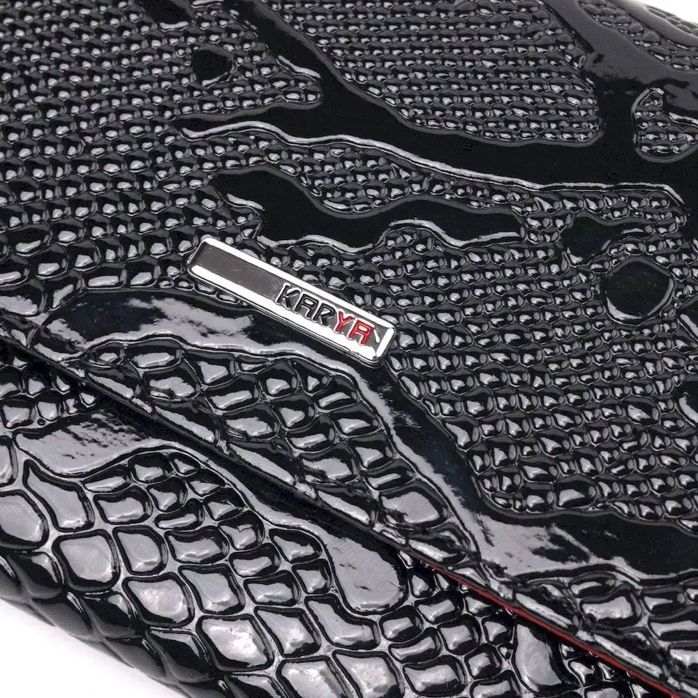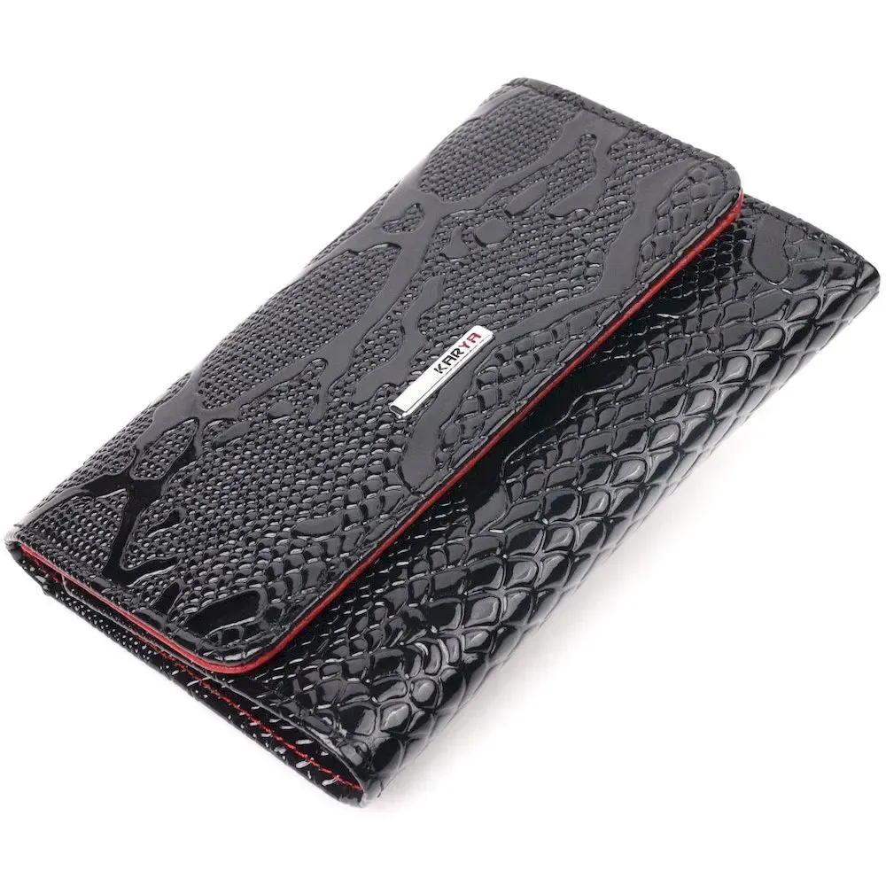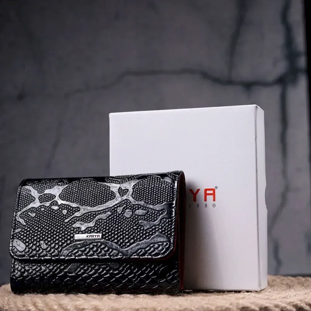 Лакированный женский кошелек с монетницей из натуральной фактурной кожи KARYA 21366 Черный