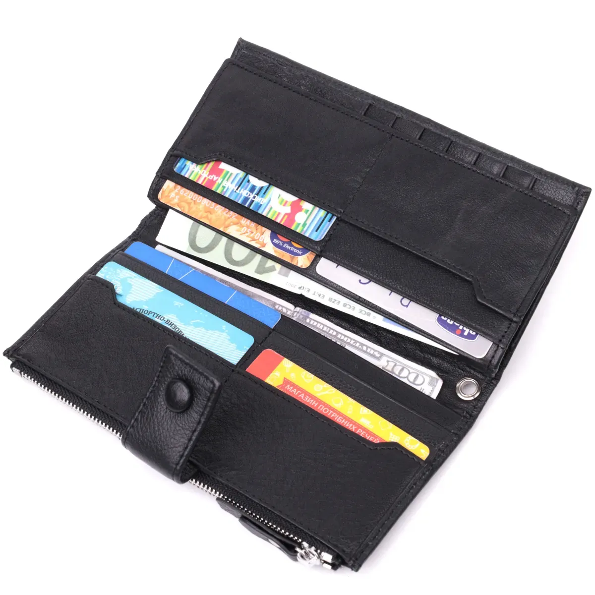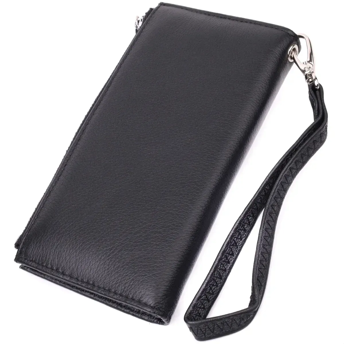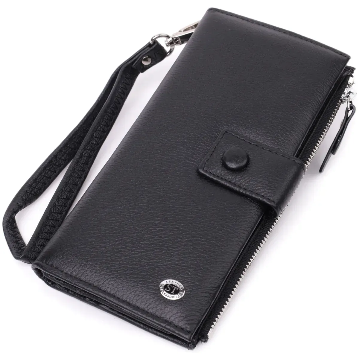 Лаконичный женский вертикальный кошелек-клатч из натуральной кожи ST Leather 22537 Черный