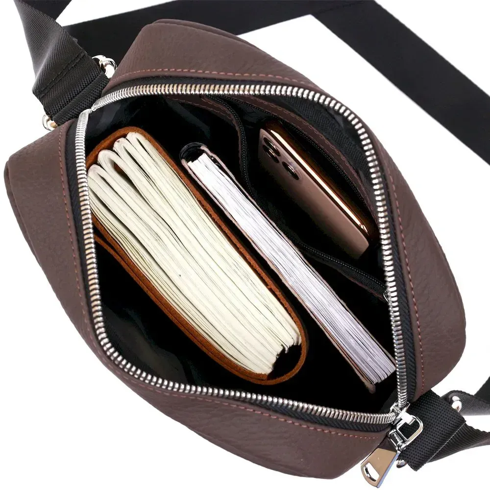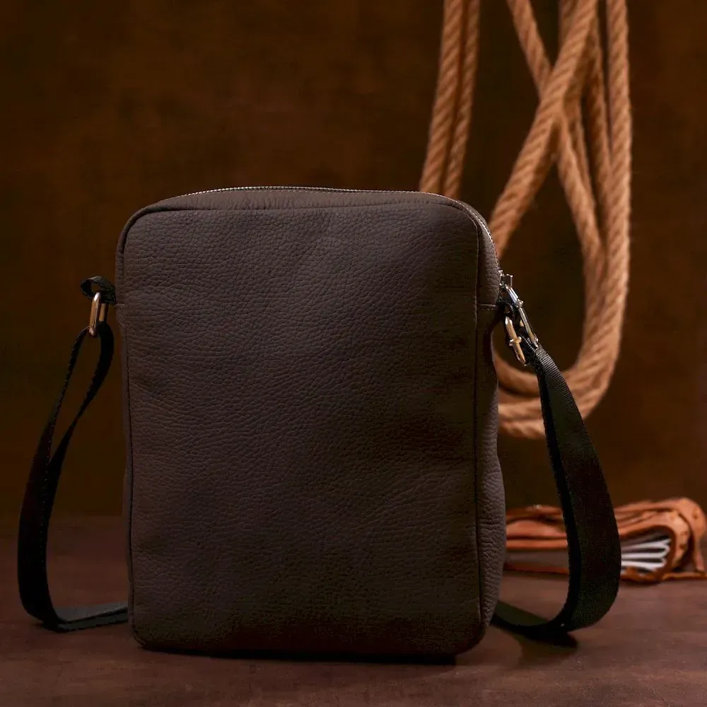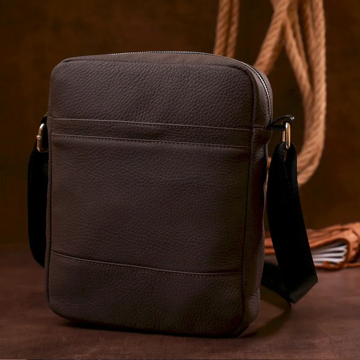 Практичная и стильная мужская сумка через плечо от украинского производителя. Выполнена данная модель из натуральной высокопрочной кожи с отличными эксплуатационными характеристиками. Внутри есть одно вместительное отделение и потайной карман на молнии, на внешней стороне присутствует карман на магните. Ремень сделан из прочного текстиля и регулируется по длине.