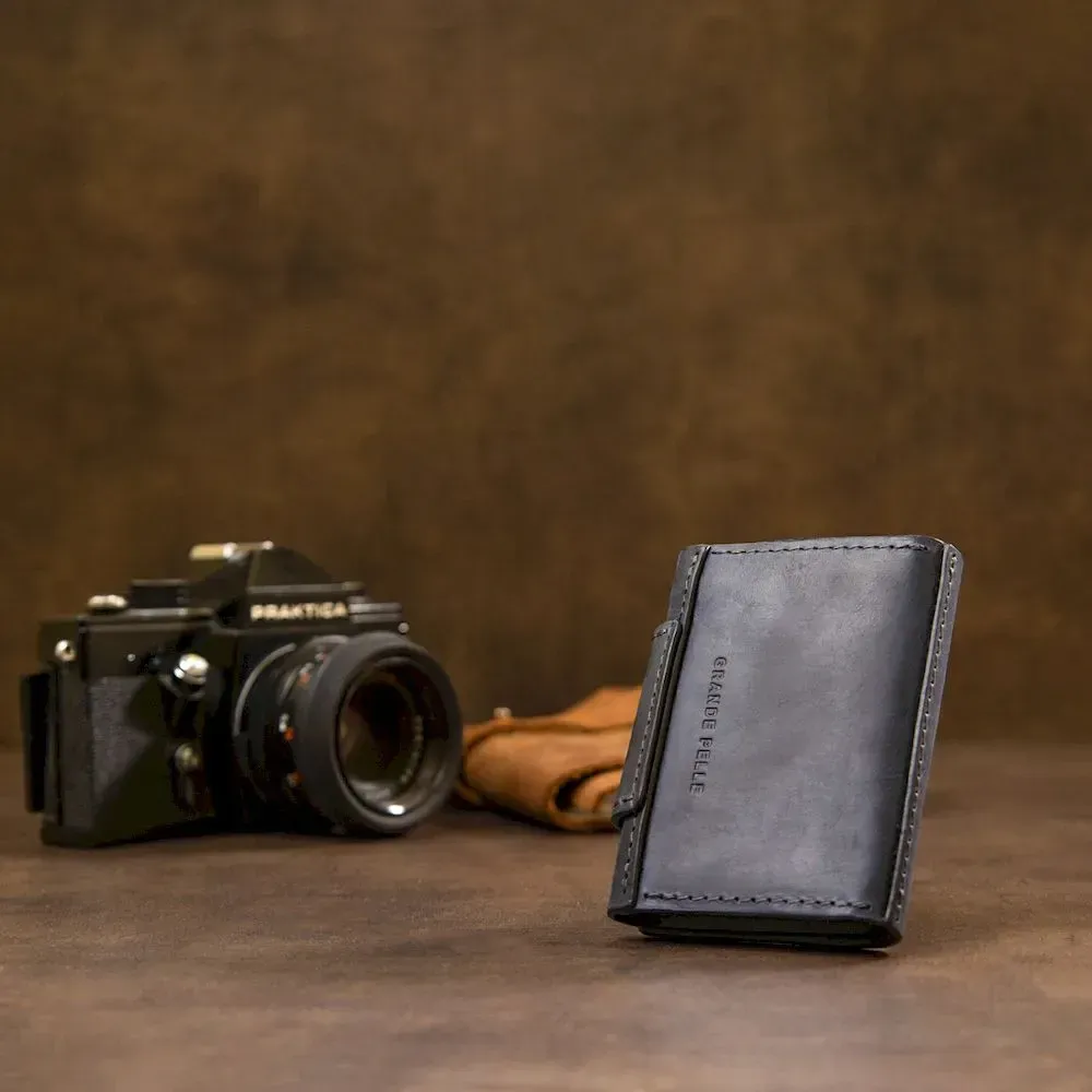 Универсальная черная визитница от украинского производителя. Изготовлена из натуральной добротной кожи, которая очень приятная на ощупь, поэтому держать такую визитницу в руках всегда приносит только удовольствие. Закрывается изделие на удобный и практичный хлястик с магнитом. Упаковка представлена в виде красивого фирменного чехла.