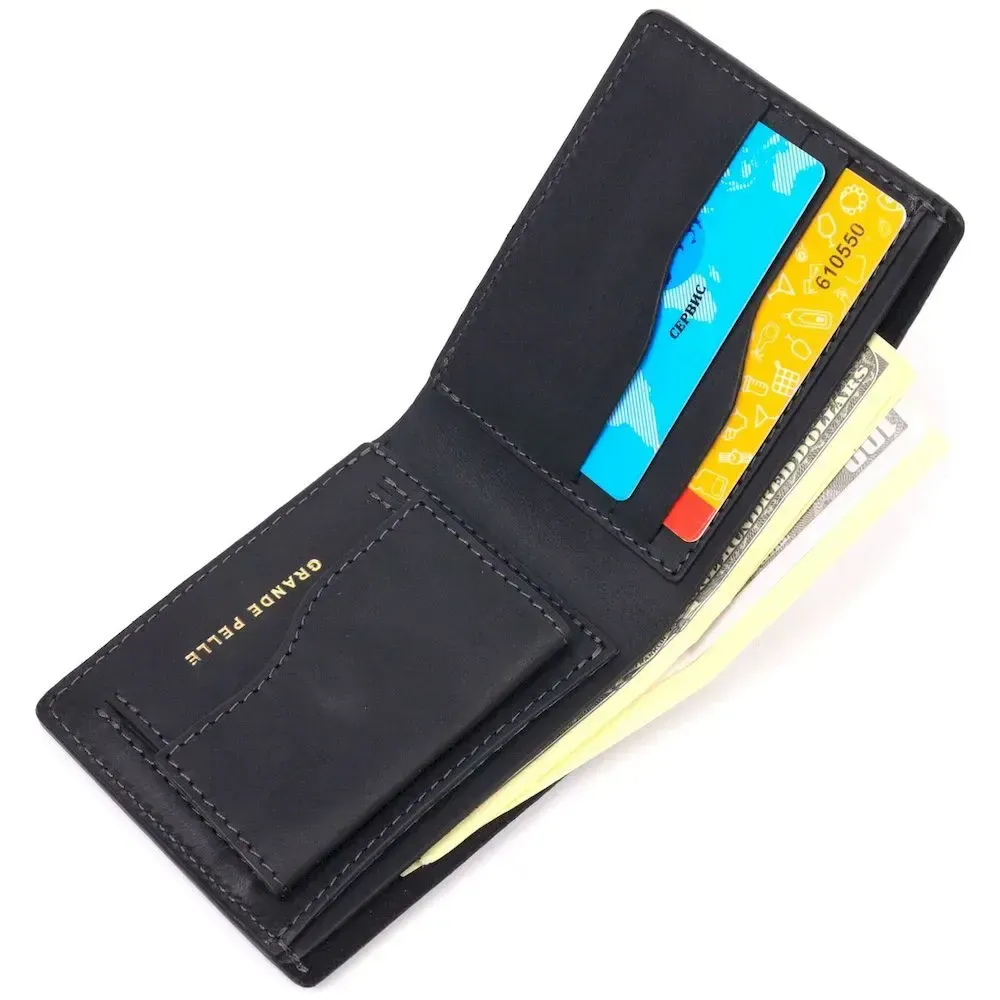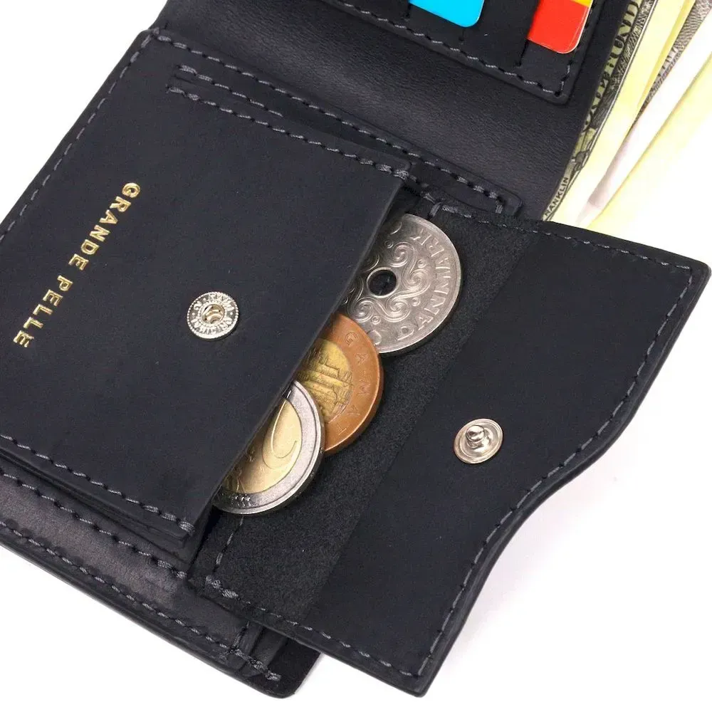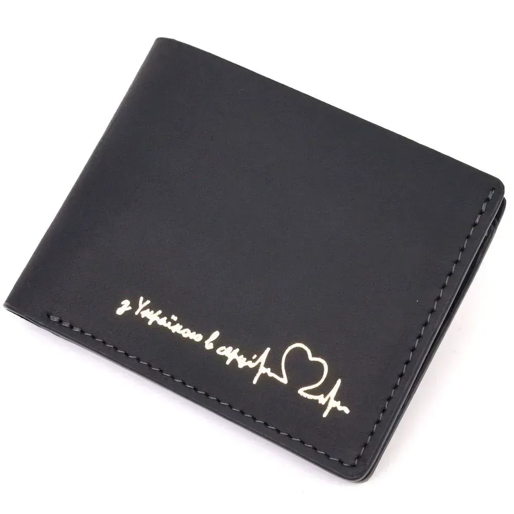 Матовое кожаное портмоне в два сложения Сердце GRANDE PELLE 16733 Черный