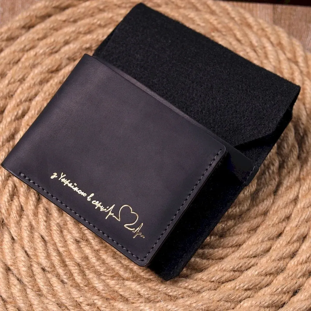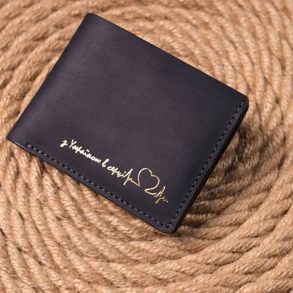 Отличный кожанный кошелек, с патриотической надписью “З Україною в сердці”. Изделие пошито из качественной гладкой кожи, с високими показателями износостойкости . Портмоне имеет два больших отделение для купюр всех номиналов, а также достаточное количество отделений для карт и монетницу. Кожаный кошелек станет отличным подарков на все случаи жизни.