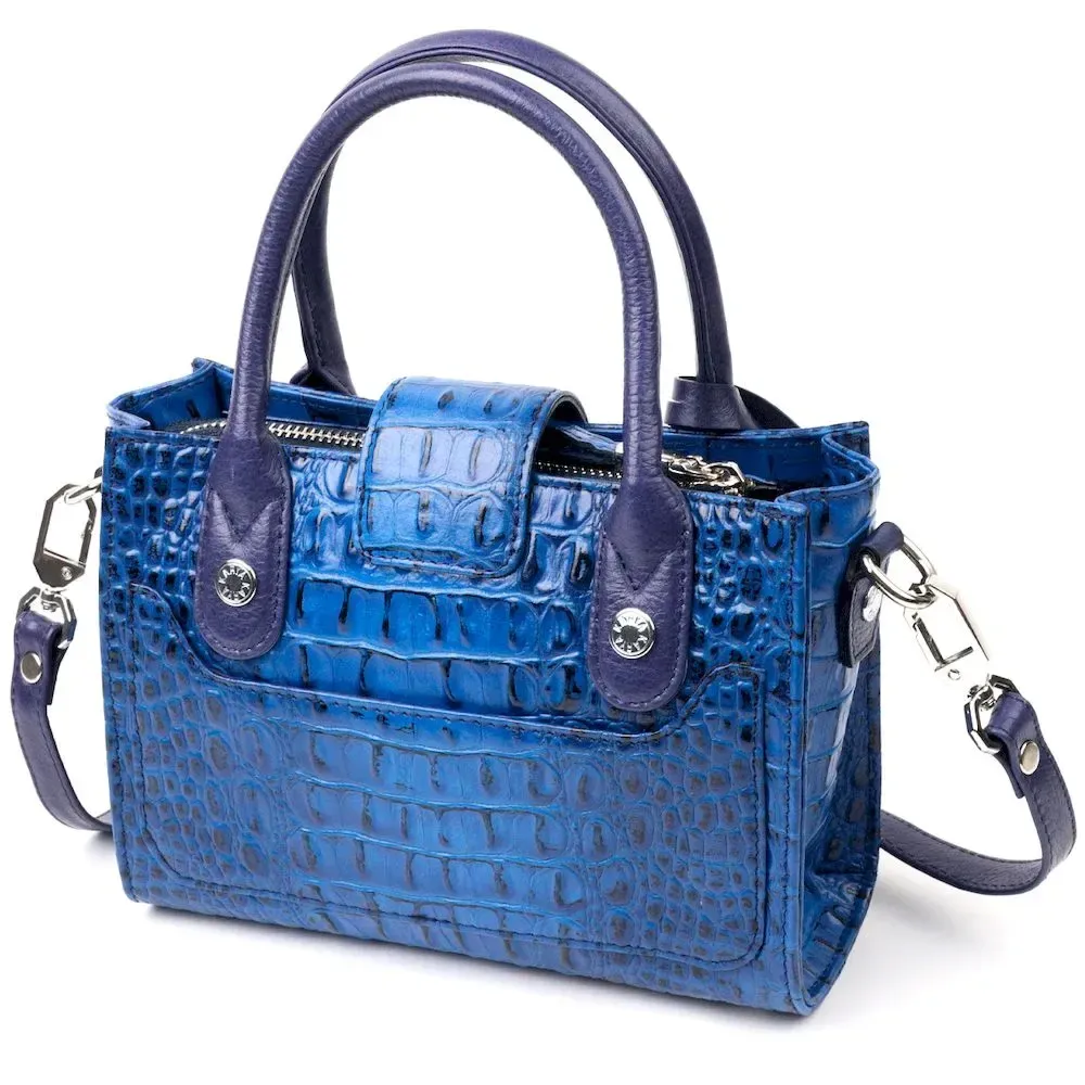 Красивая небольшая женская сумка из натуральной кожи, с тиснением под рептилию. Все материалы из которых исполнено изделие кожа, фурнитура, подкладка - высокого качества с повышенными показателями стойкости к различному износу. Цвет данной сумки – синий, что очень хорошо подчеркивает индивидуальность и стиль современной женщины.