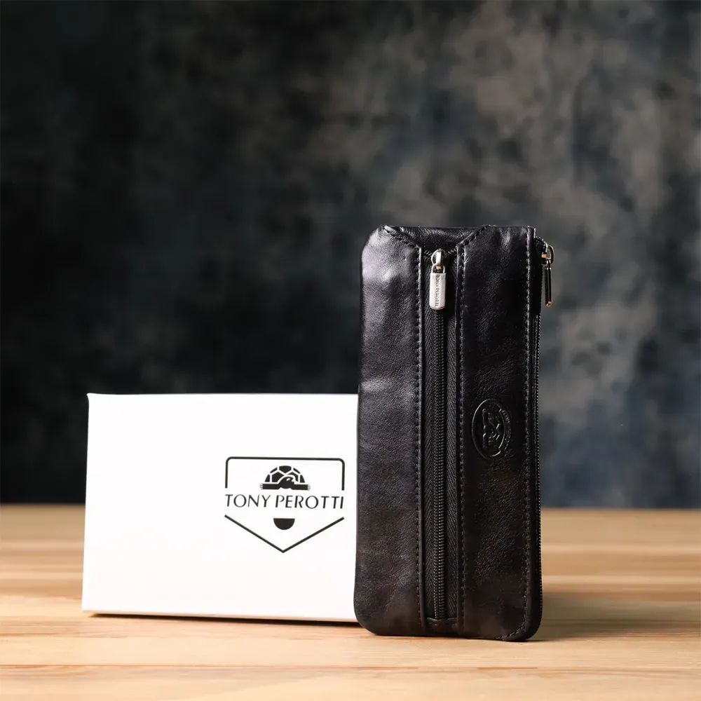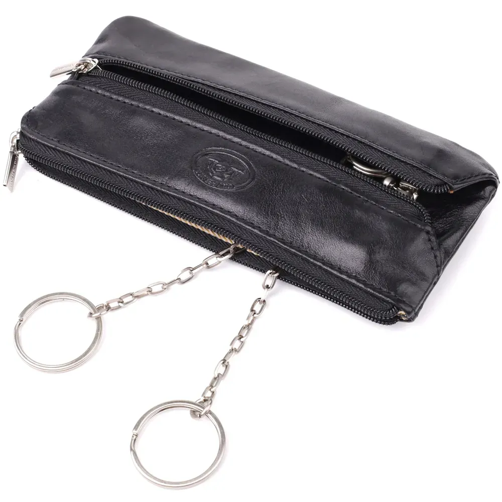 Елегантна шкіряна ключниця від італійського бренду Tony Perotti – стильний та функціональний аксесуар для зберігання ключів. Виріб виконаний з гладкої натуральної шкіри, оснащений двома кишенями на блискавці з різним розташуванням кілець для ключів, що забезпечує зручність та порядок. Тиснення бренду підкреслює оригінальність, а компактний дизайн робить ключницю ідеальним подарунком та практичним аксесуаром на кожен день.