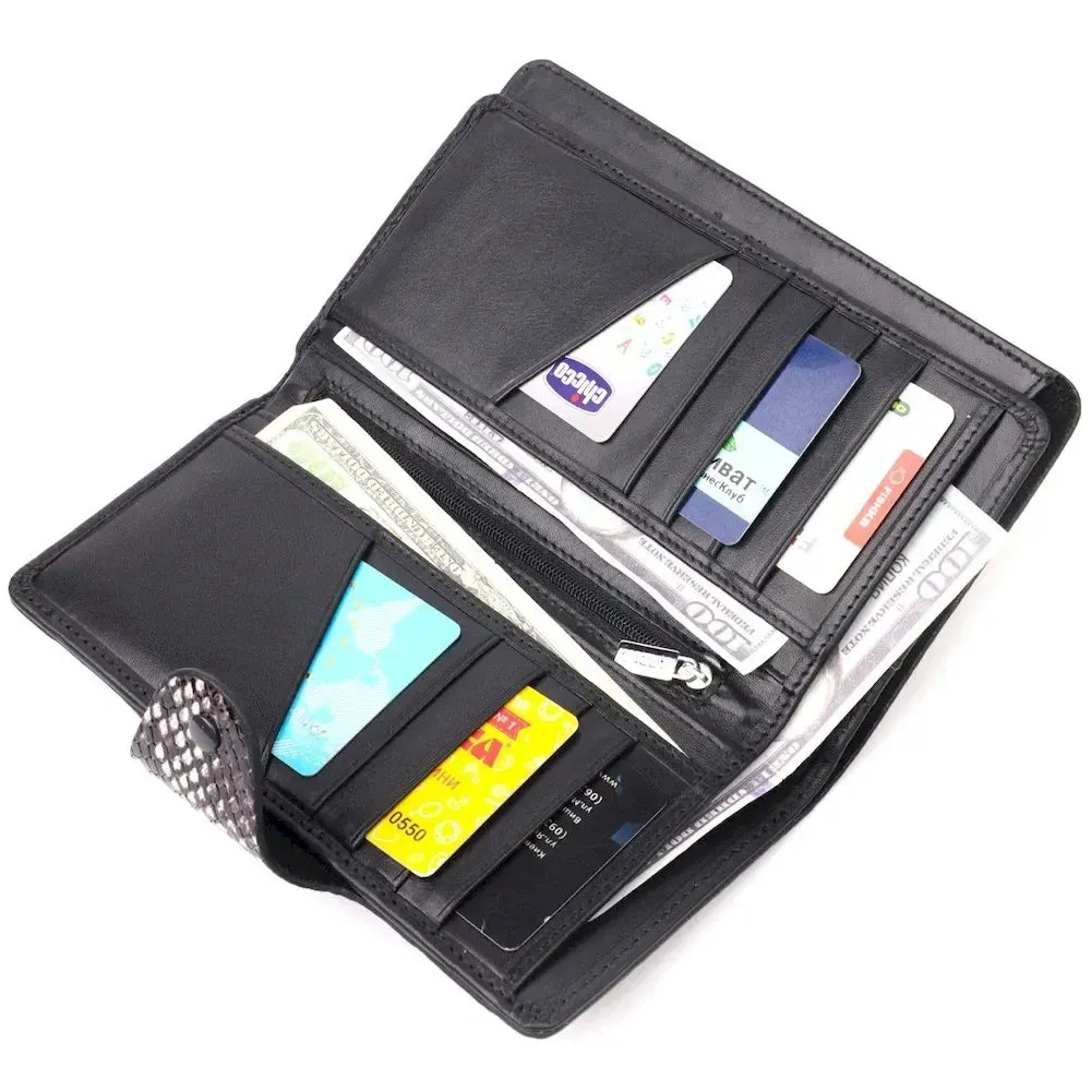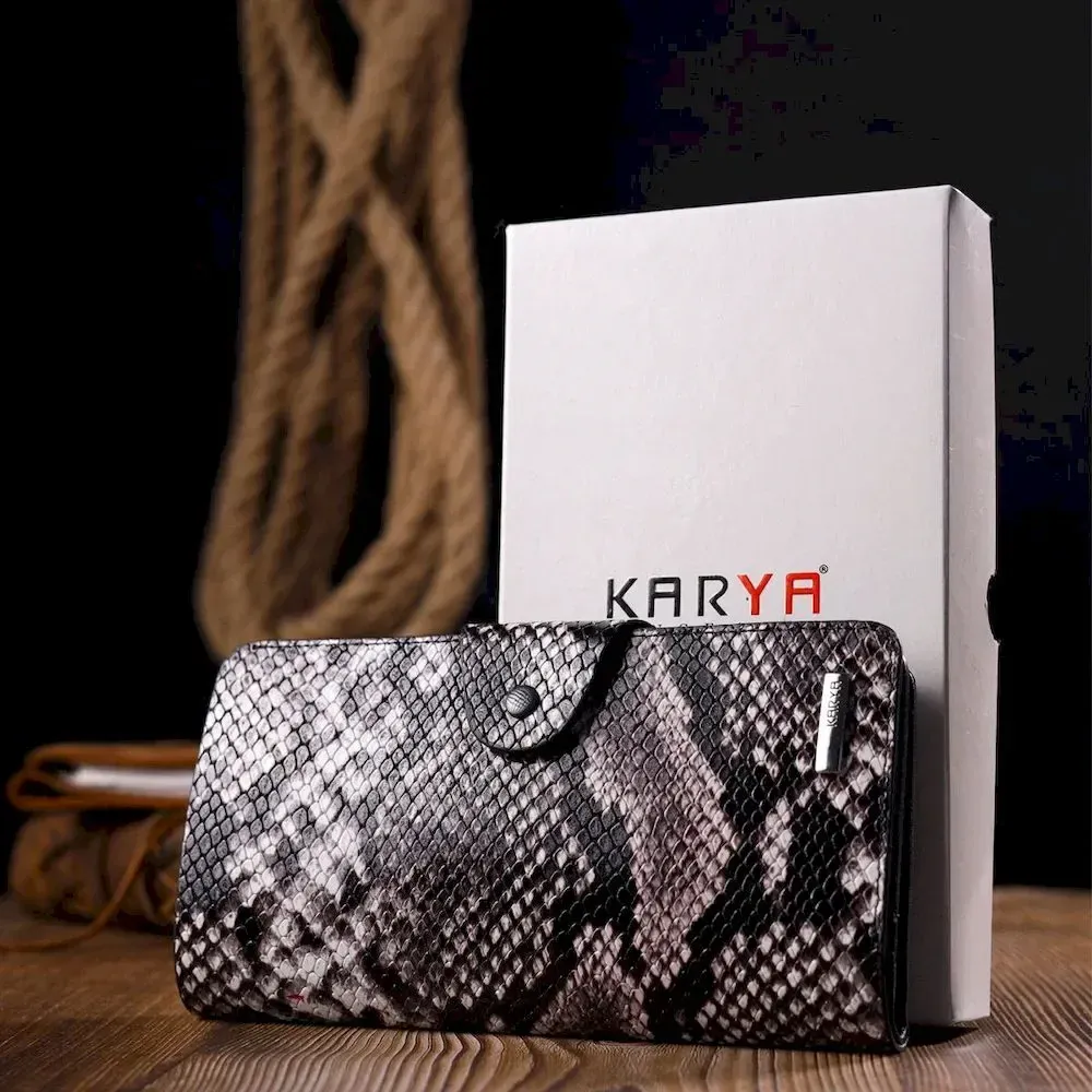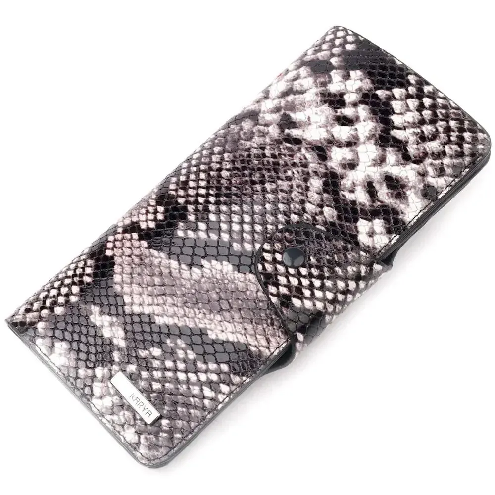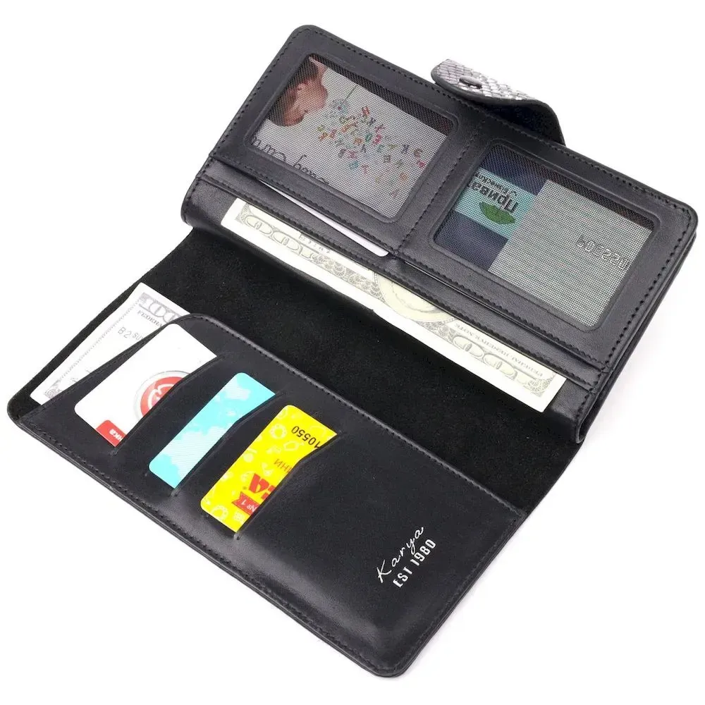 Многофункциональное женское портмоне из натуральной фактурной кожи под змею KARYA 21002 Черный