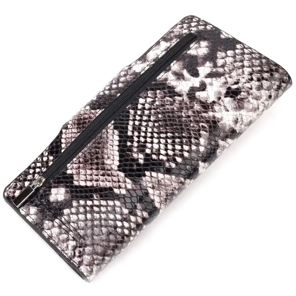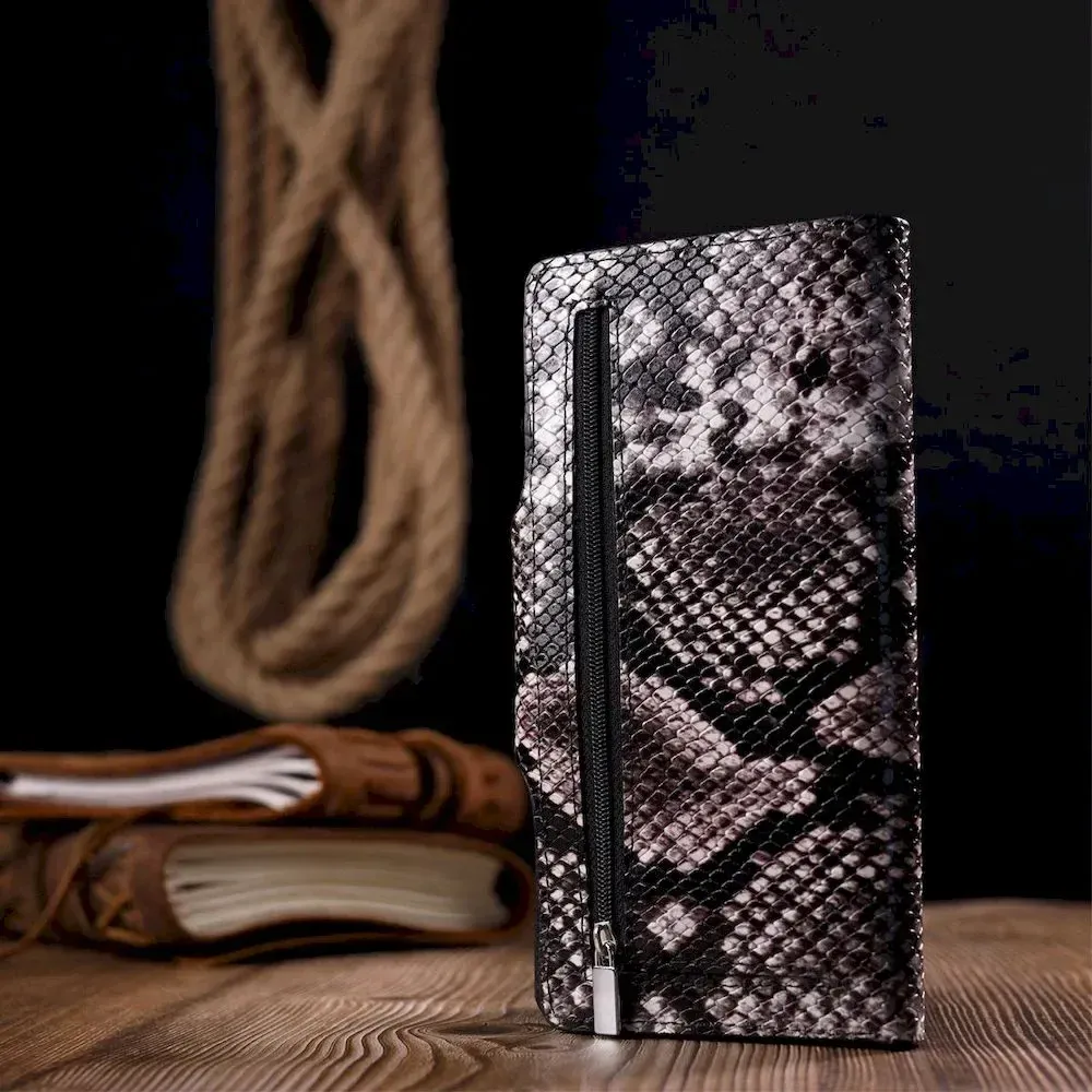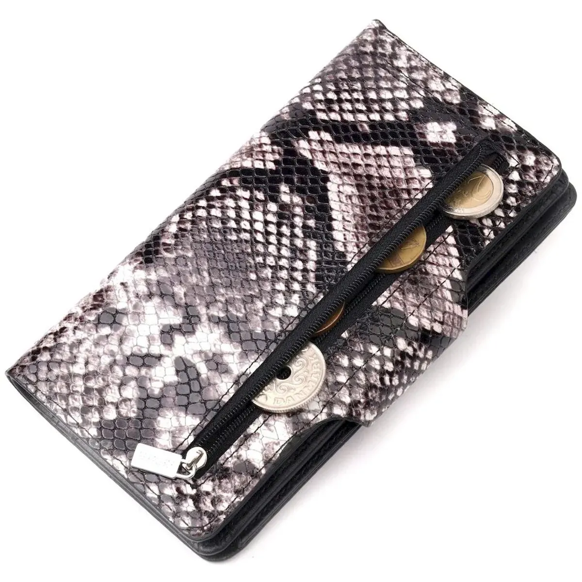 Многофункциональное женское портмоне из натуральной фактурной кожи под змею KARYA 21002 Черный