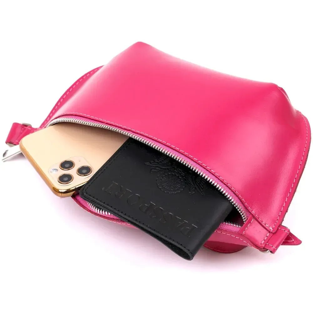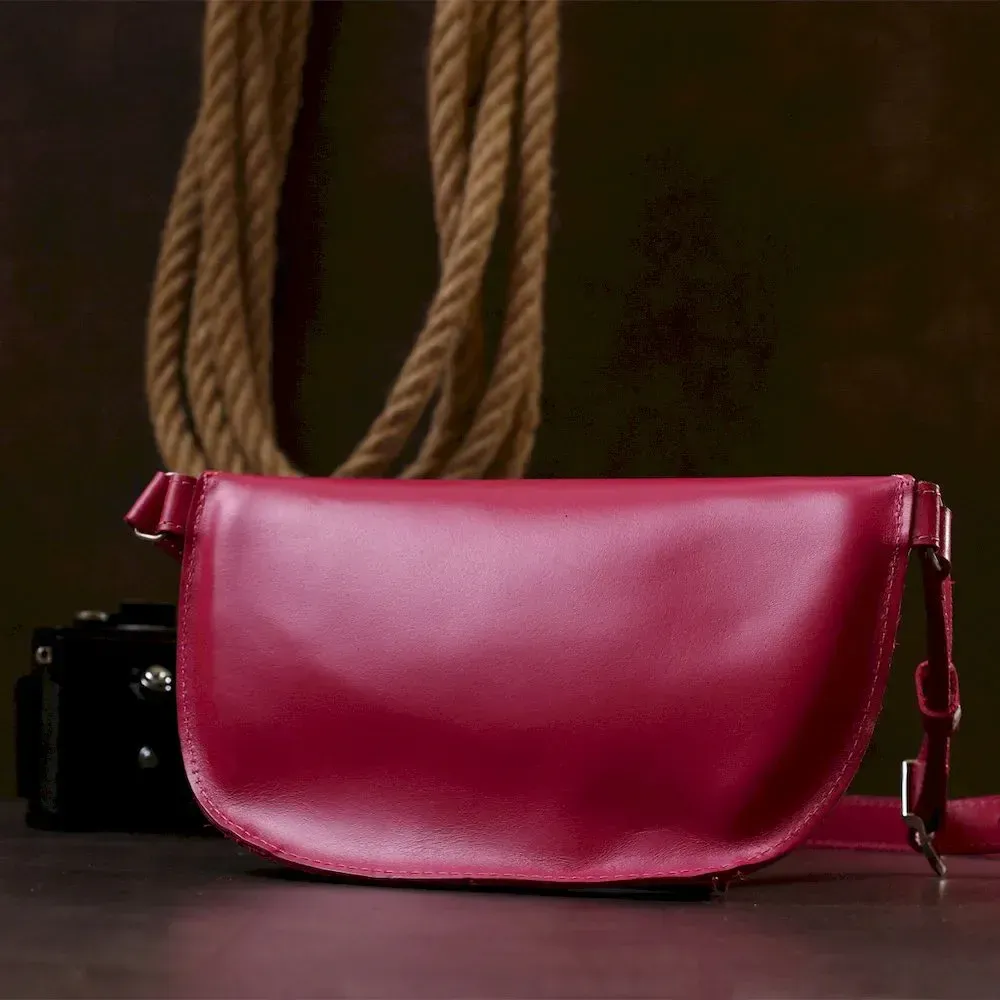 Модная женская бананка из натуральной кожи Shvigel 16392 Малиновый