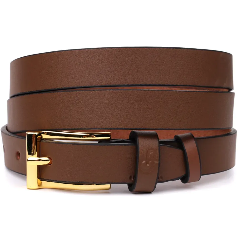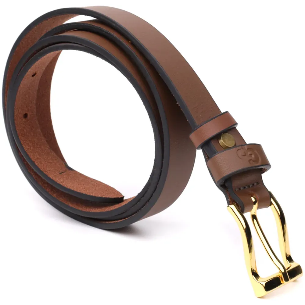 Модний вузький шкіряний ремінь для жінок GRANDE PELLE 22954 Світло-коричневий