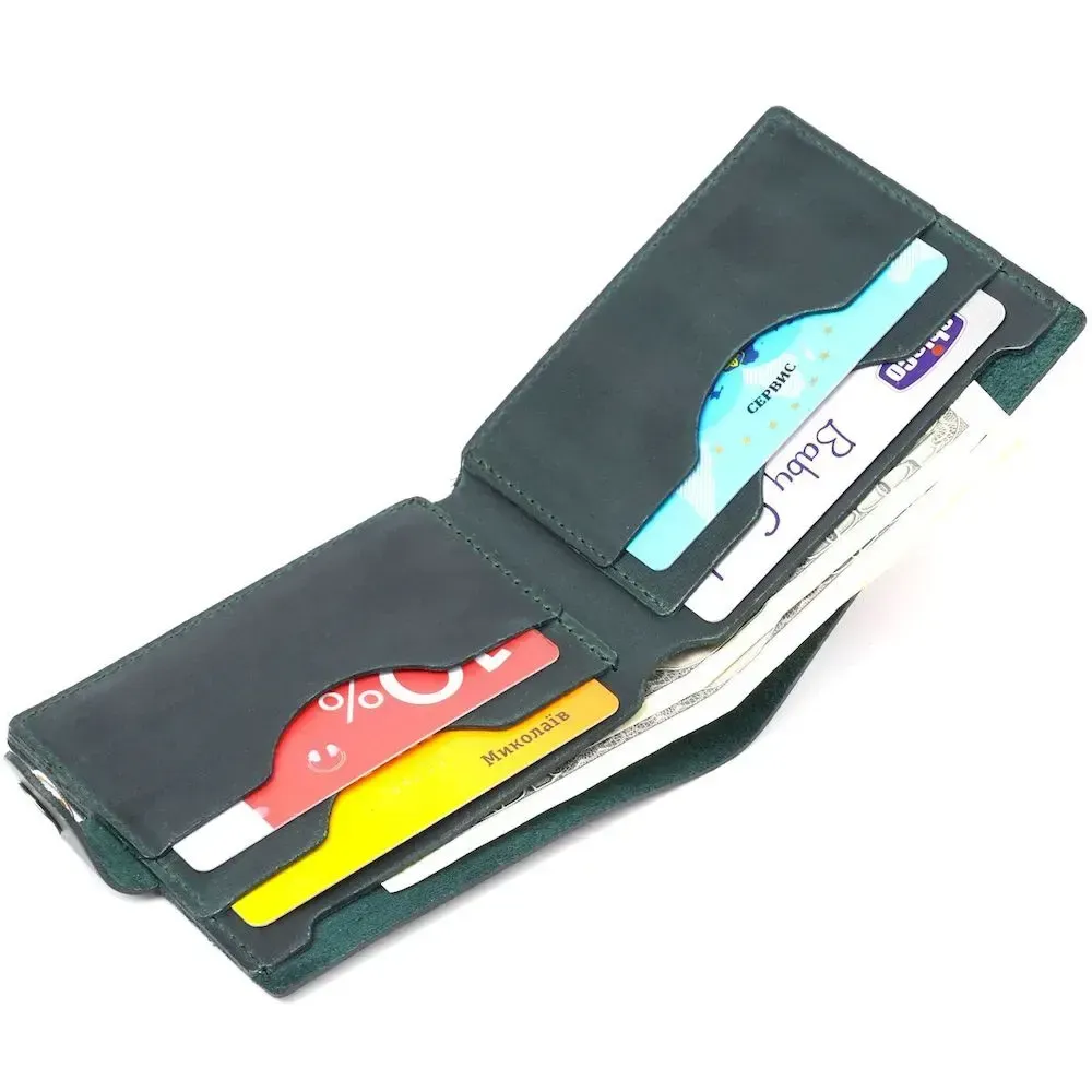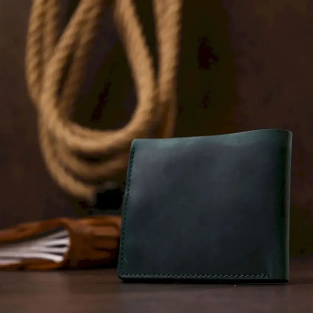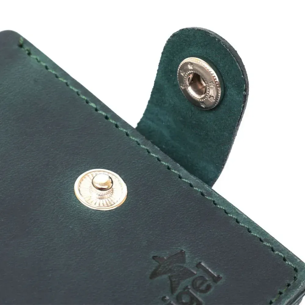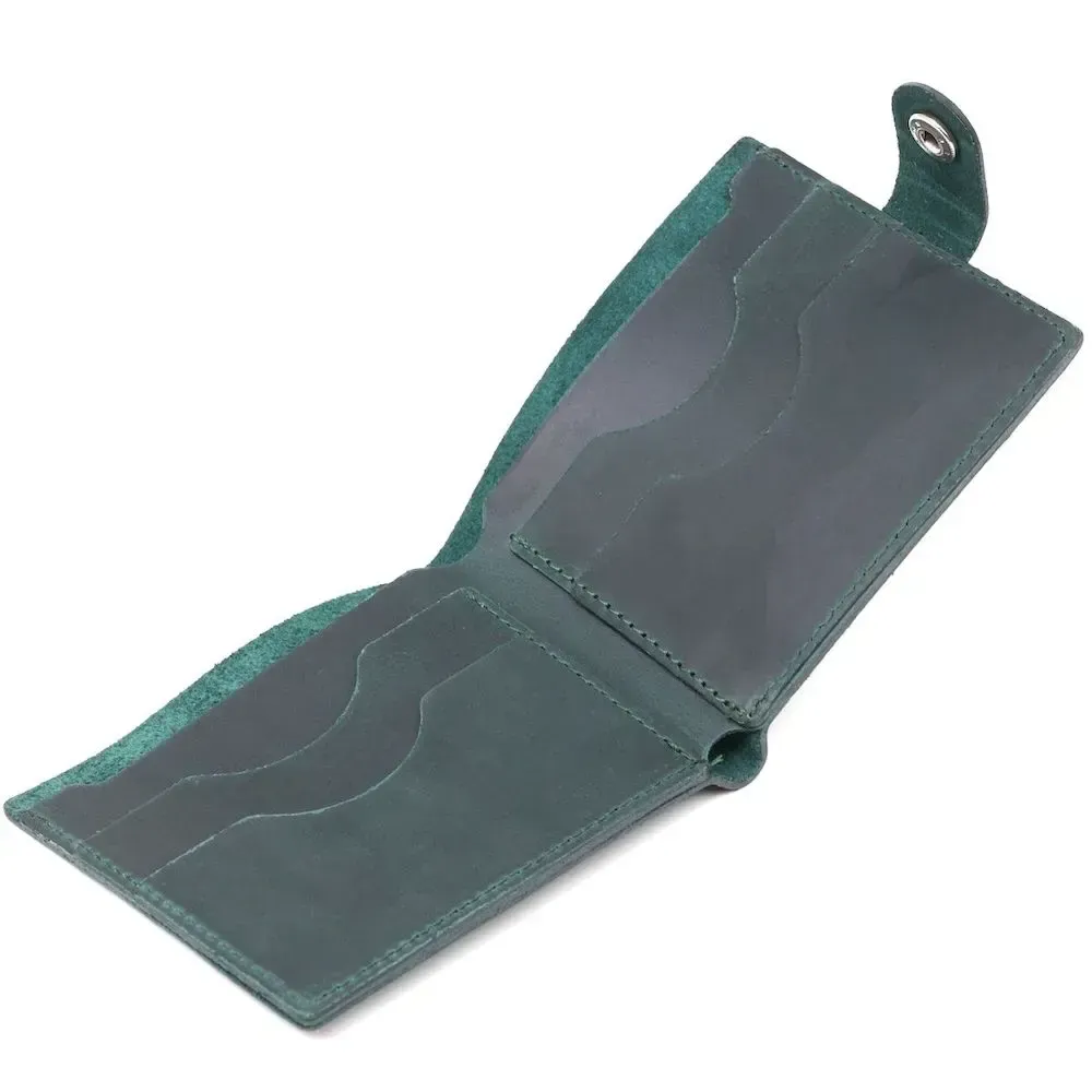 Замечательное портмоне в красивом матовом зеленом цвете. Выполнено из натуральной кожи высокого качества с отличными характеристиками износоустойчивости и прочности. Внутреннее наполнение представлено в виде вместительного основного отделения и слотов для пластиковых карточек. Закрывается аксессуар с помощью кожаного хлястика на кнопку.