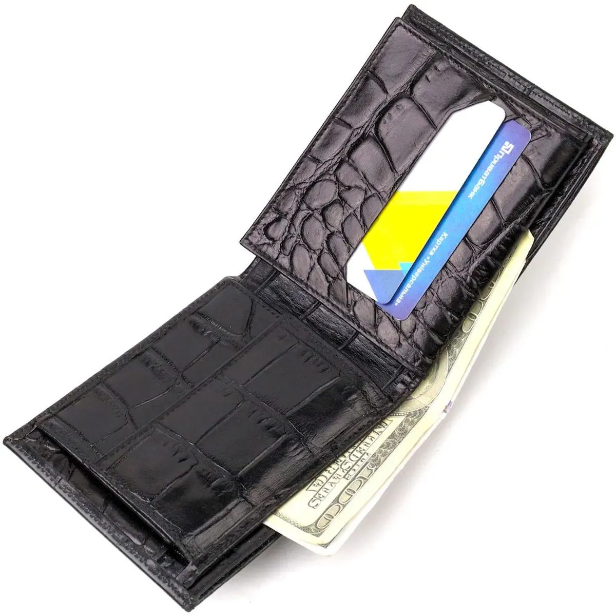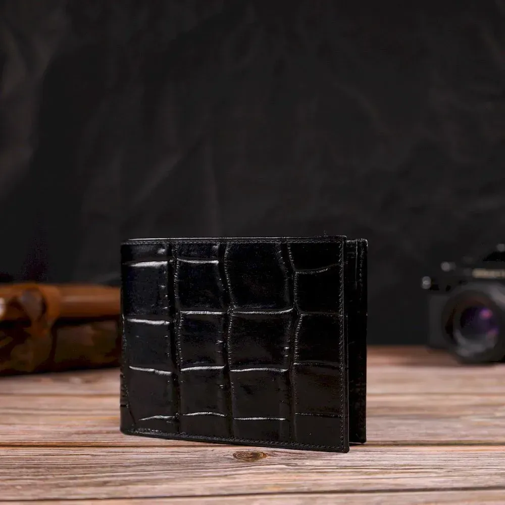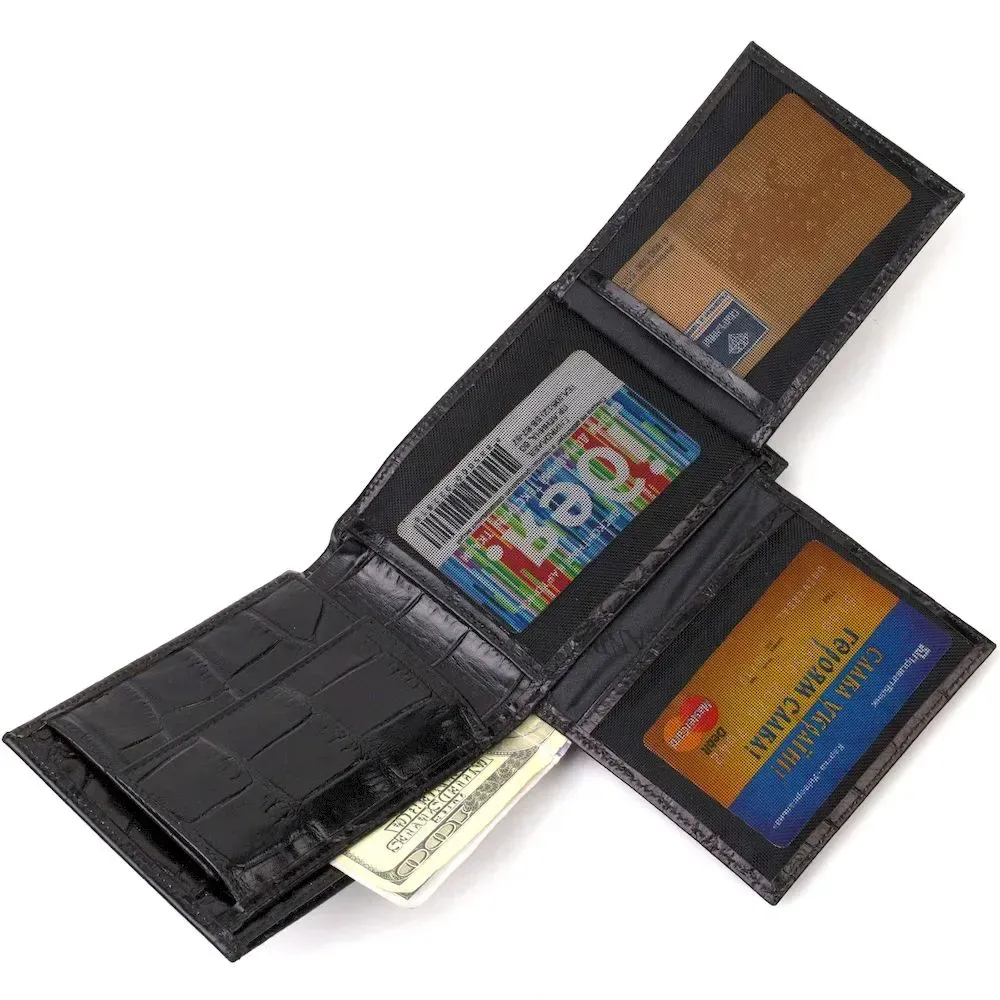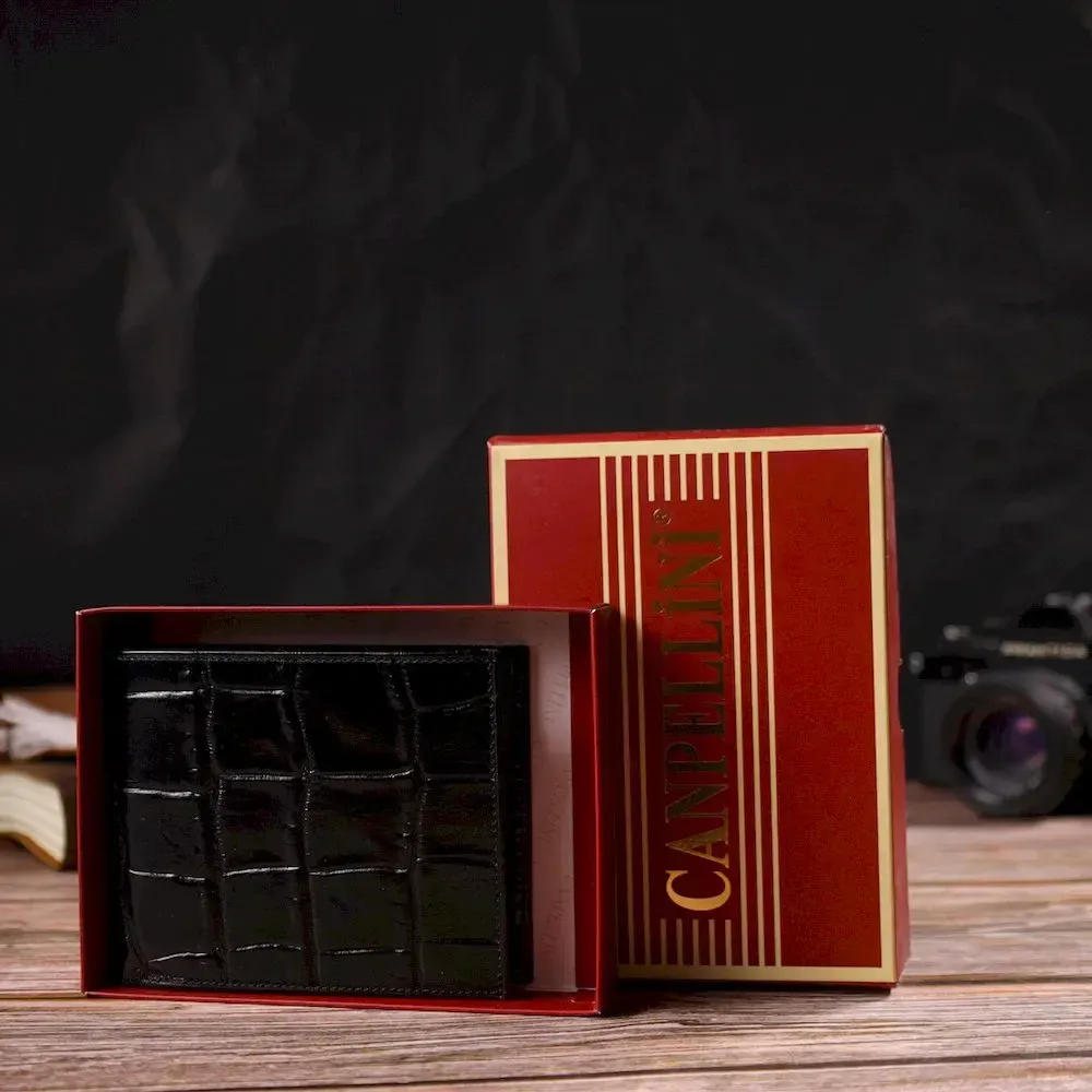 Модный кошелек для мужчин из натуральной кожи с тиснением под крокодила CANPELLINI 21925 Черный