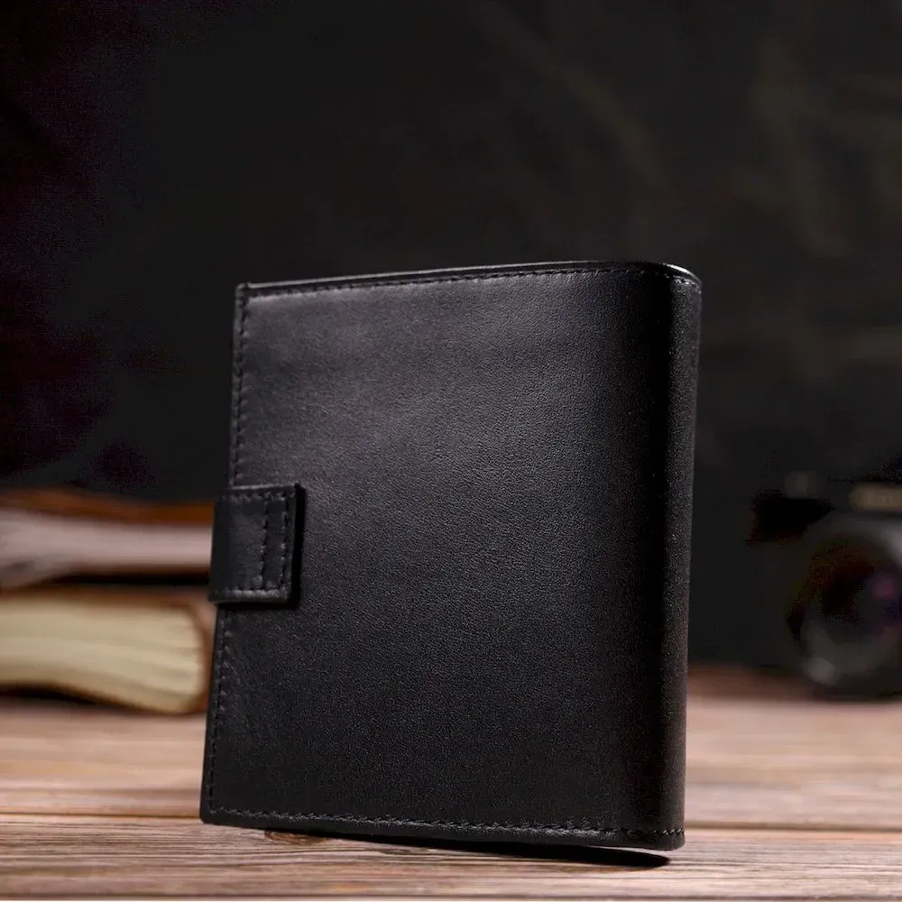 Модный мужской бумажник из натуральной гладкой кожи CANPELLINI 21727 Черный