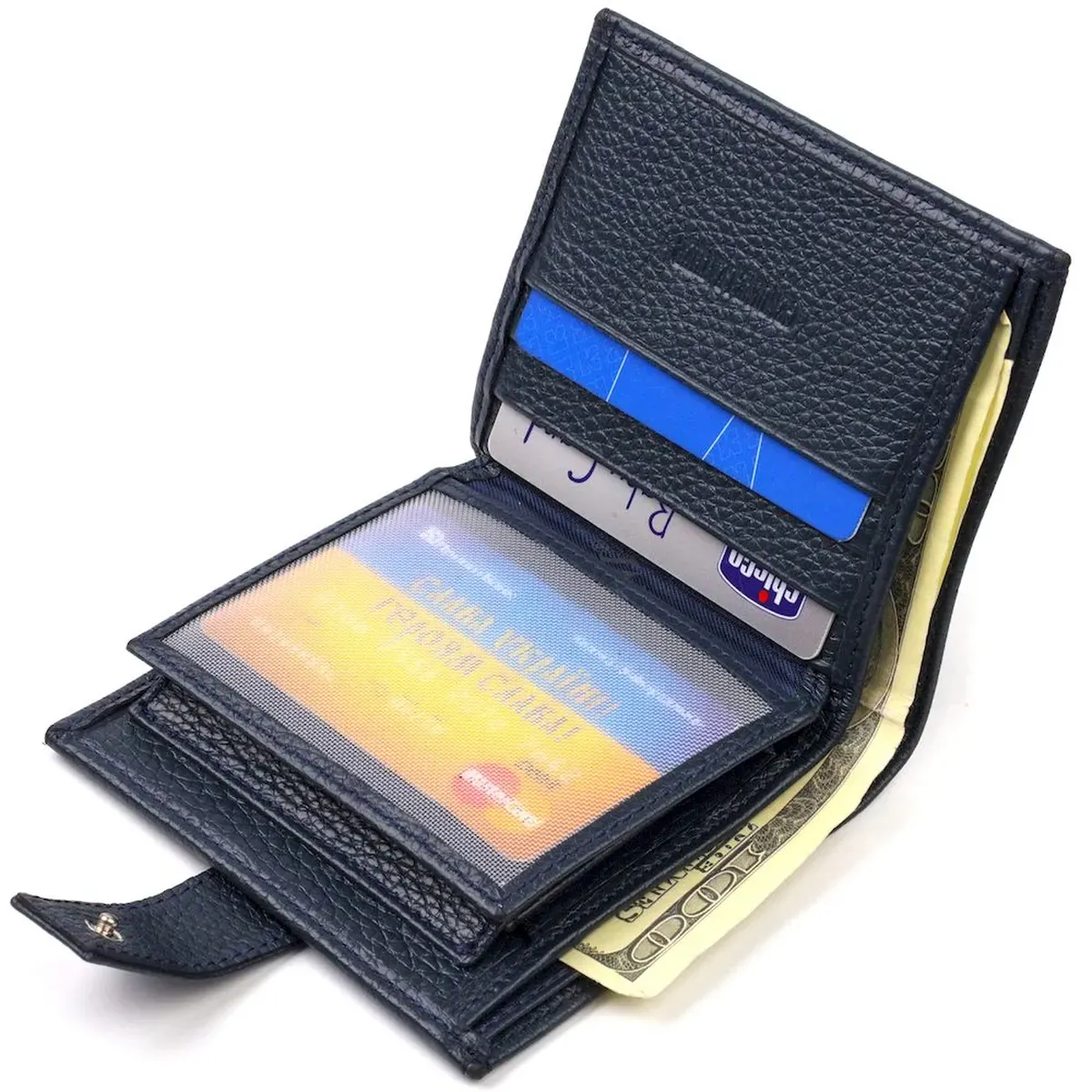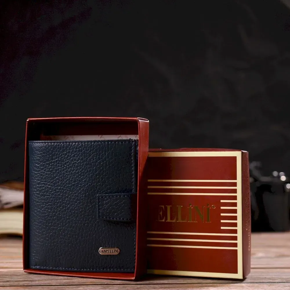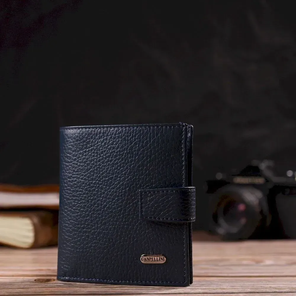Модный мужской бумажник из натуральной зернистой кожи CANPELLINI 21746 Синий