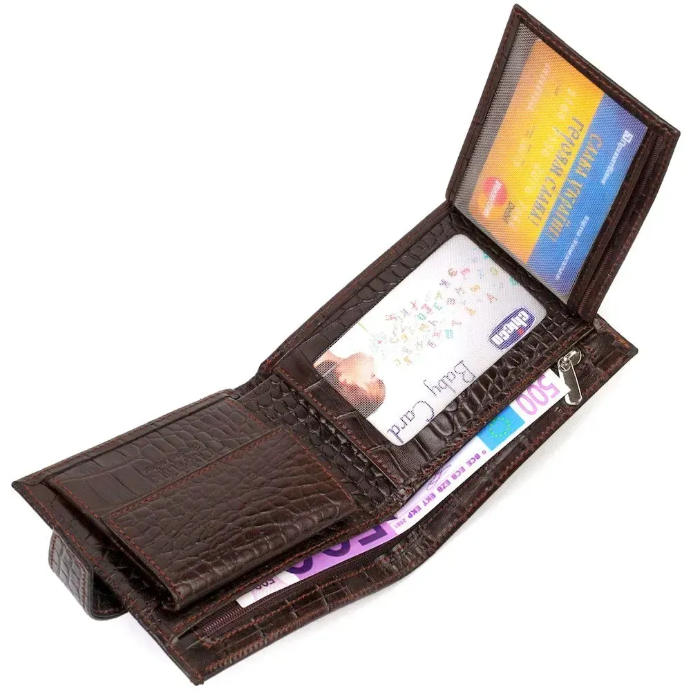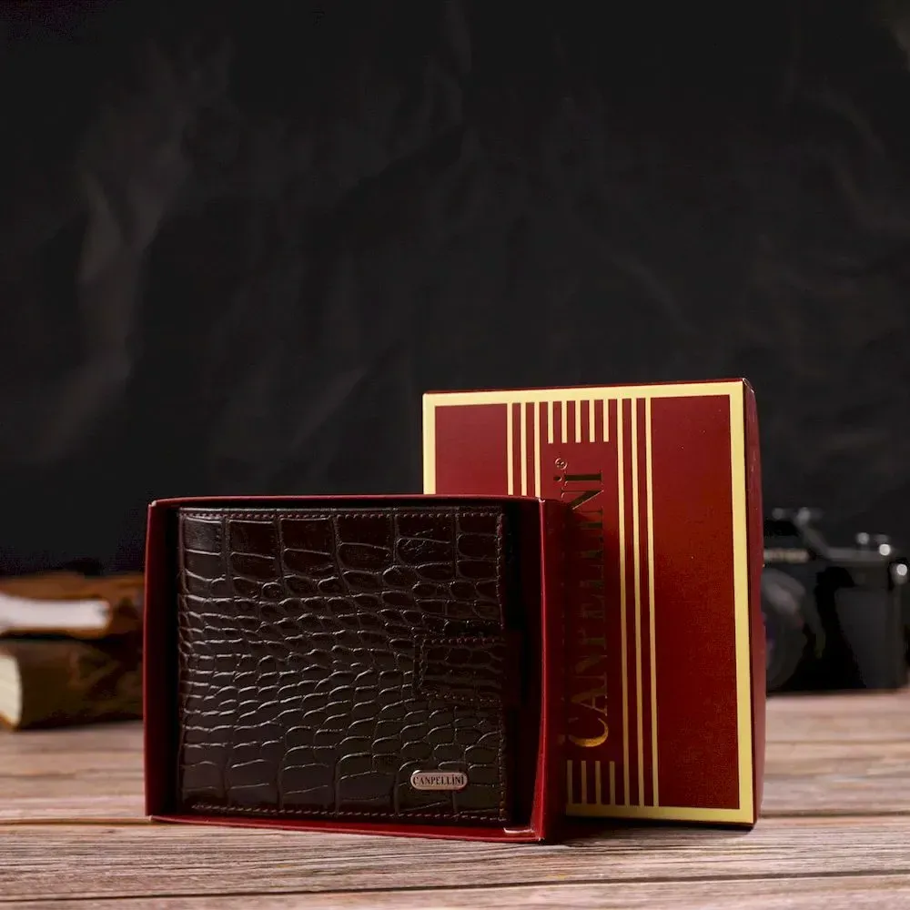 Модный мужской кошелек из натуральной кожи тиснением под крокодила CANPELLINI 21878 Коричневый