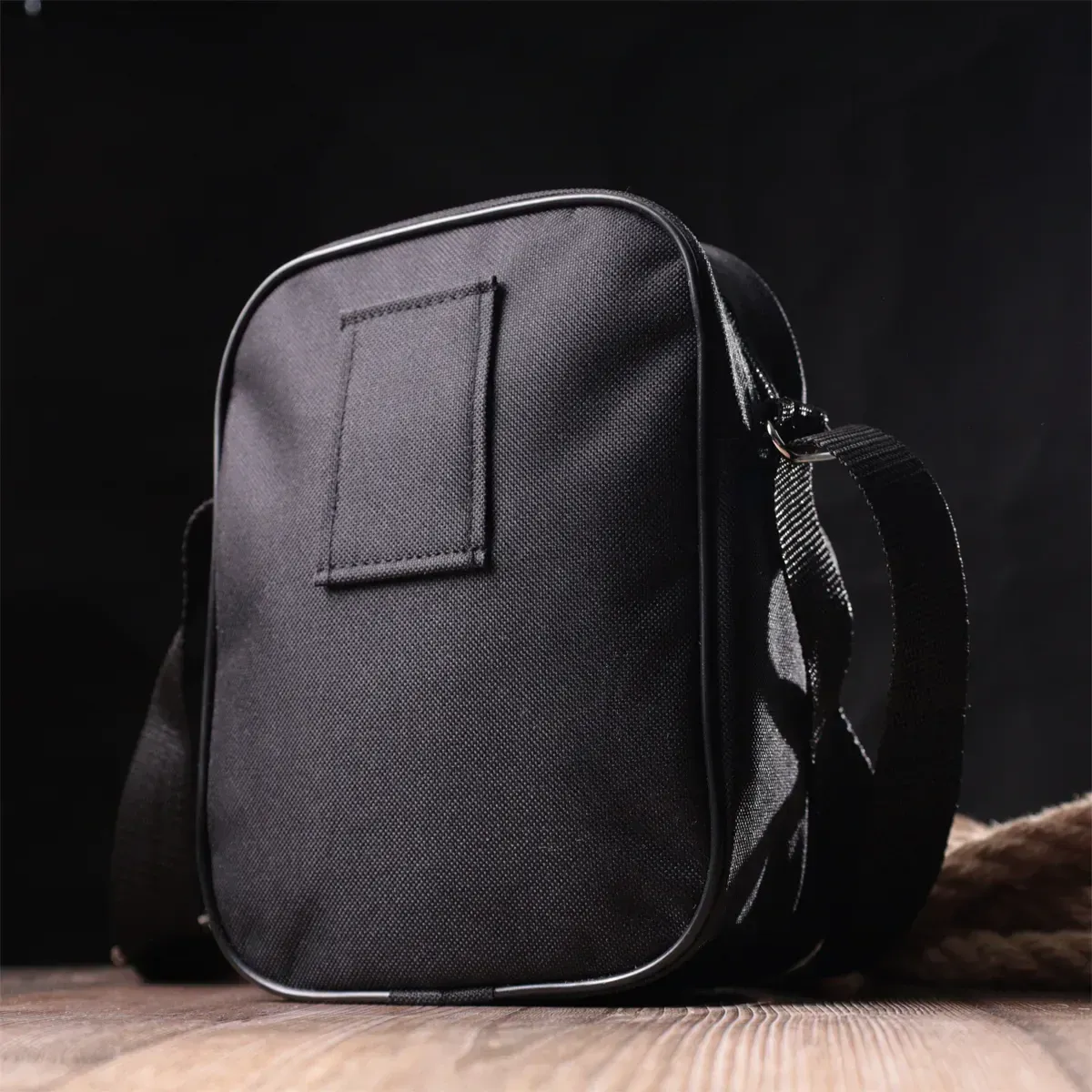 Компактная вертикальная сумка на каждый день из качественного материала - полиэстера. Изделие имеет небольшой размер и практичный функционал, все для Вашего удобства и практичного использования. Аксессуар состоит из одного просторного отделения и двух карманов разных размеров снаружи, что очень удобно. В нее отлично помещается портмоне небольшого размера, документы, ключи и еще много необходимых мелочей, которые всегда должны быть под рукой. Носить аксессуар можно на плече при помощи надежного не съемного регулируемого ремня, а также на поясе при помощи специальной петельки. На лицевой стороне, внизу посередине, вышит значок бренда, что есть залогом качества. Пошита сумка аккуратно, все строчки ровные, фурнитура надежная и качественная. Стильная тканевая сумка станет желанным подарком для ваших родных и близких и самое главное очень полезным и необходимым.