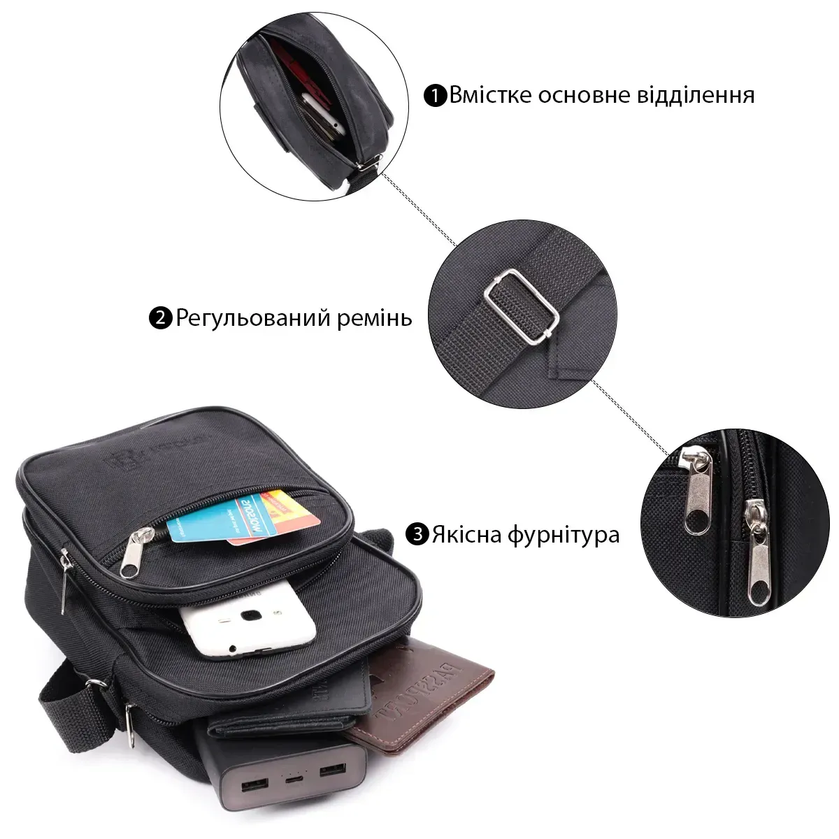 Мужская компактная сумка на плечо из качественного полиэстера FABRA 22578 Черный
