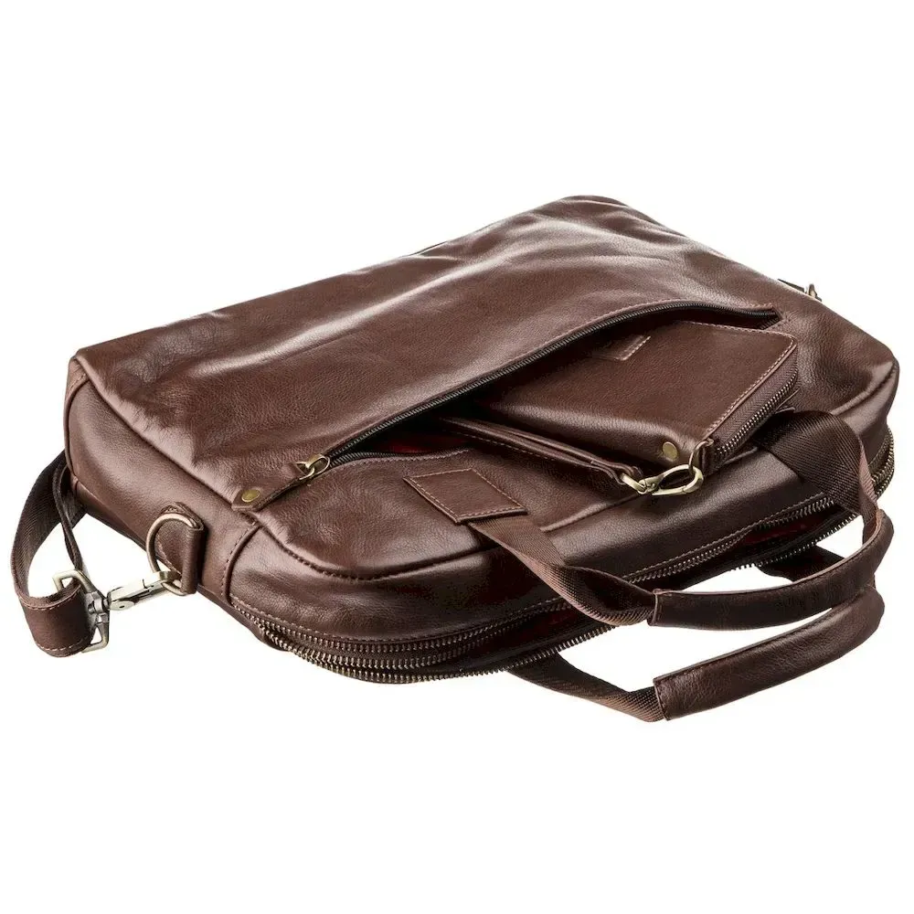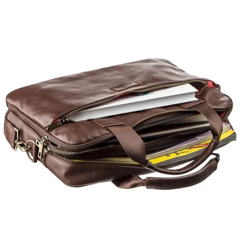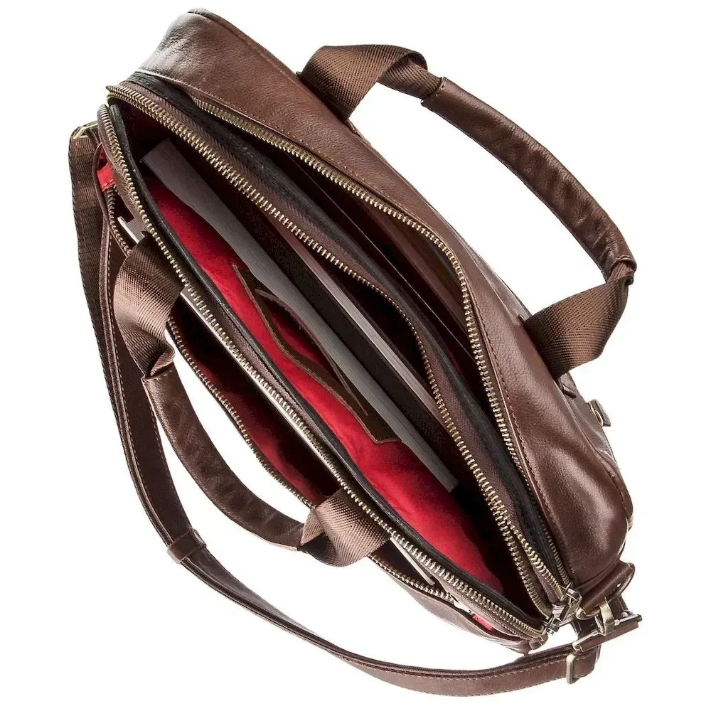 Мужская кожаная сумка под ноутбук на 2 отделения SHVIGEL 19107 Коричневая