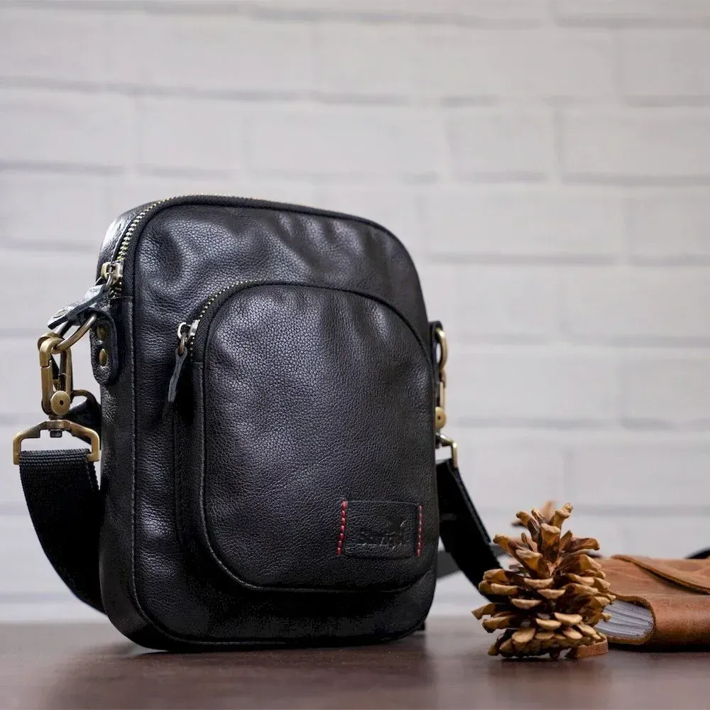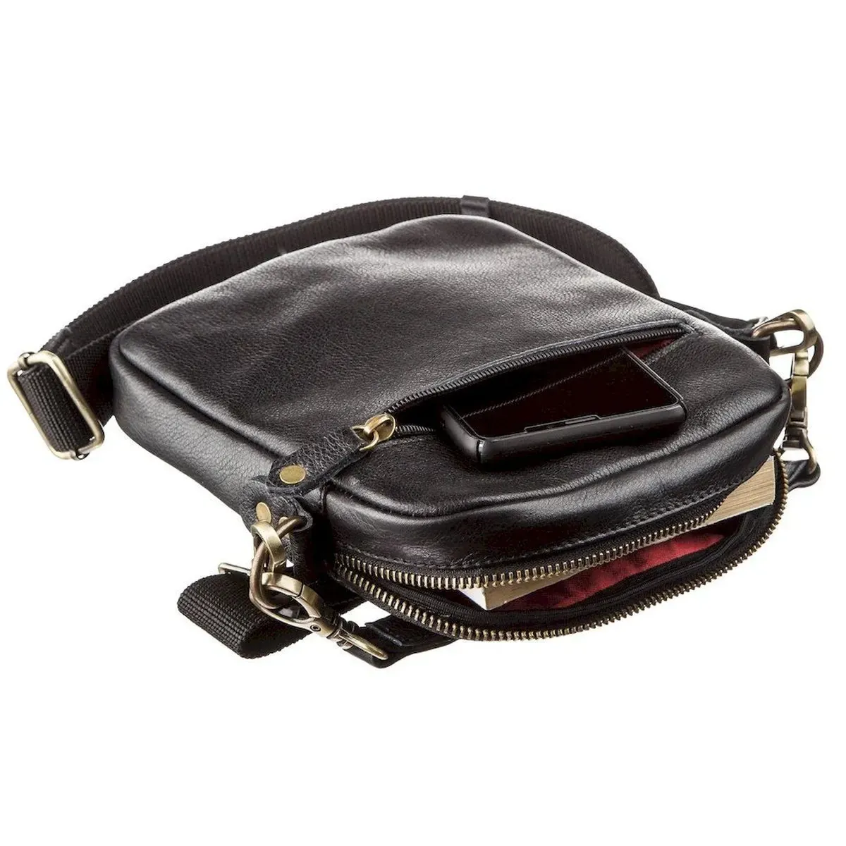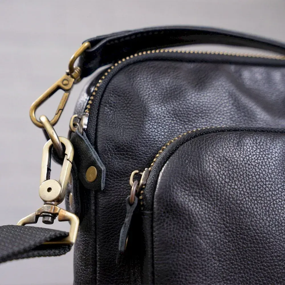 Мужская кожаная сумка с двумя съемными ручками SHVIGEL 19110 Черная