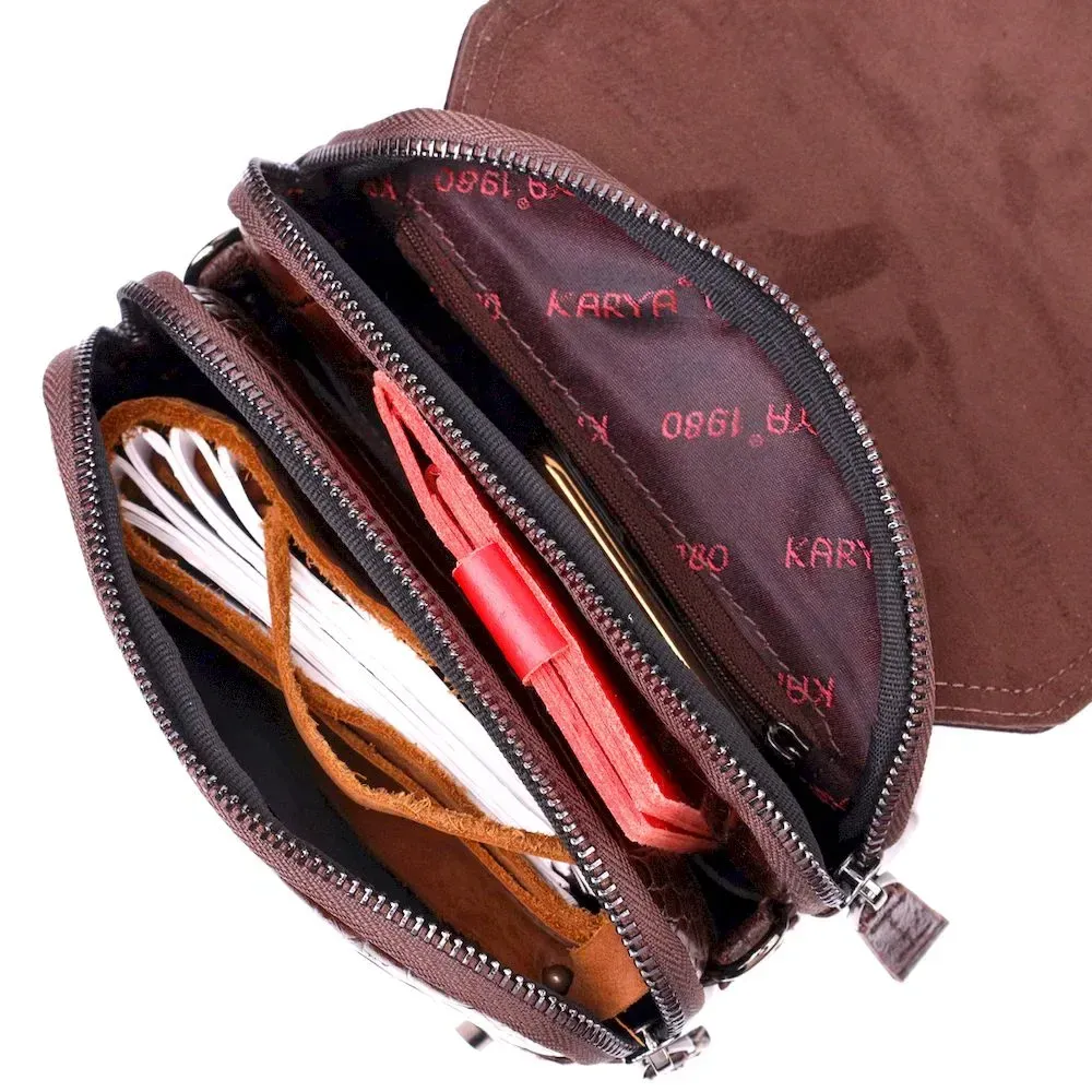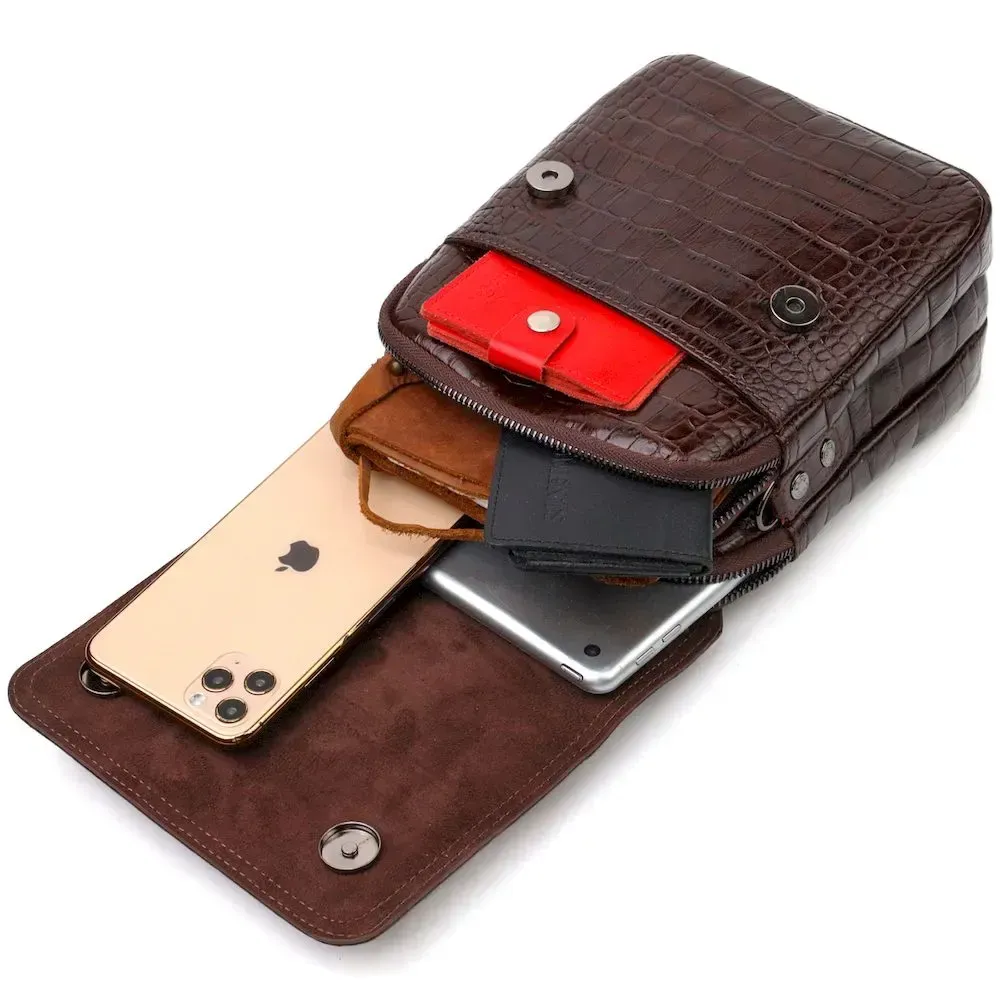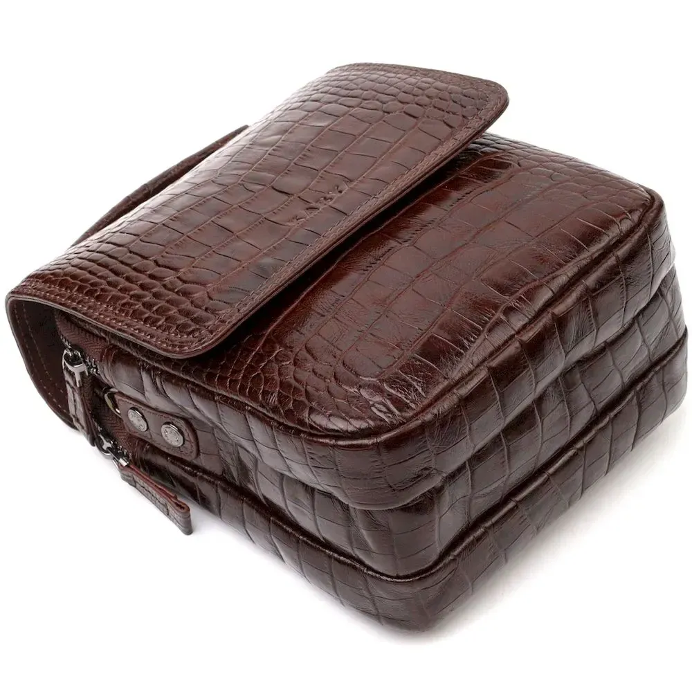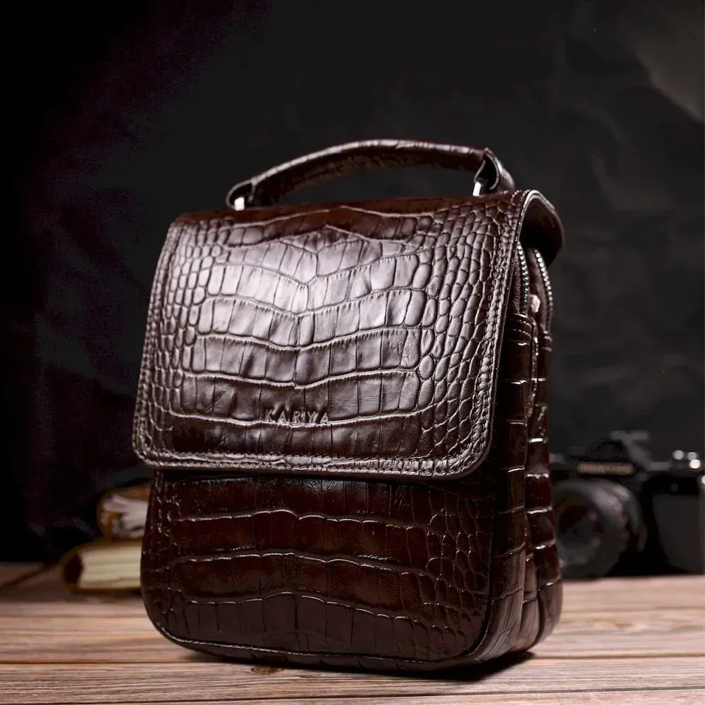 Мужская вертикальная сумка из натуральной кожи с тиснением под крокодила KARYA 21946 Коричневый