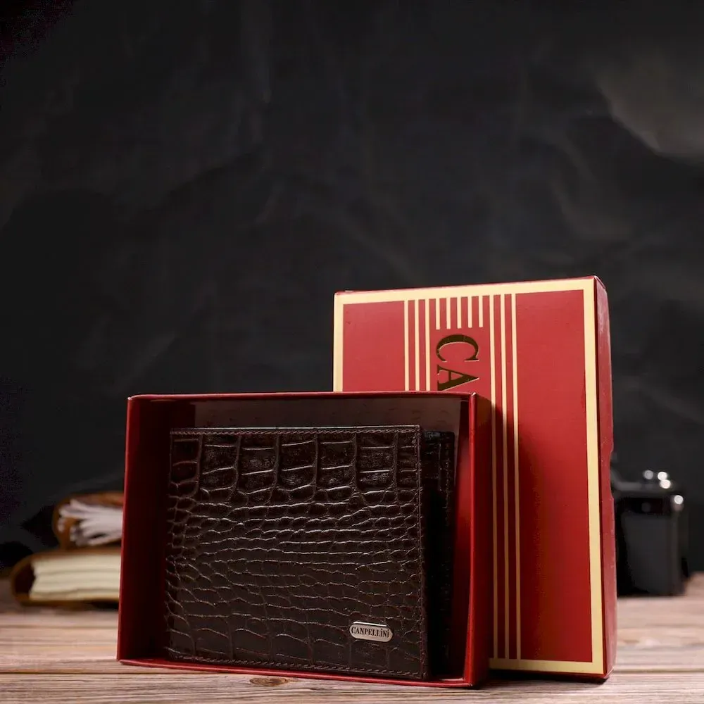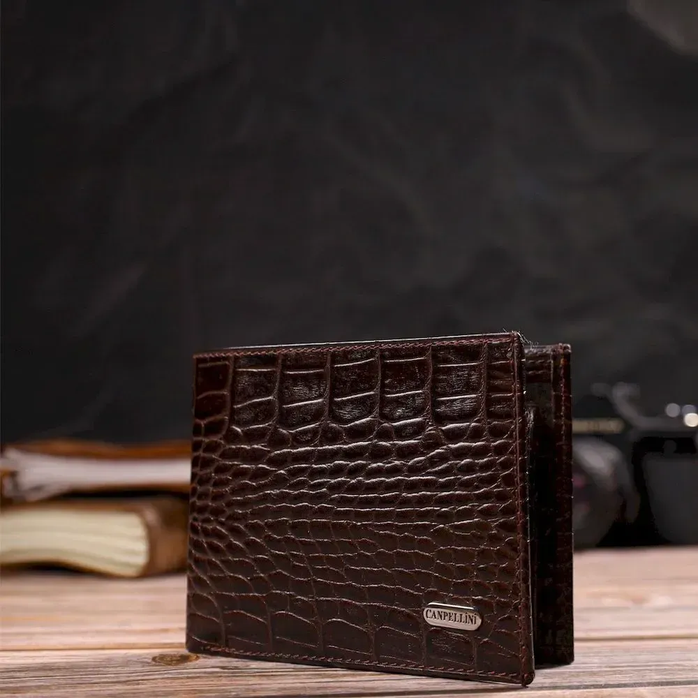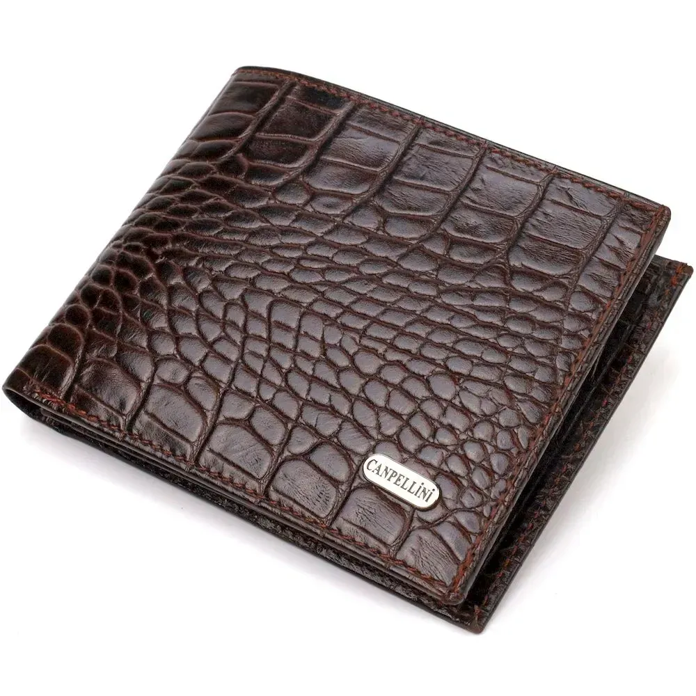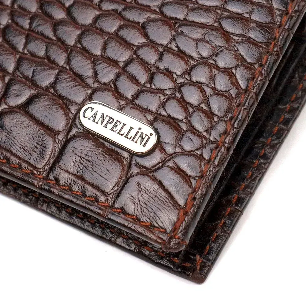 Мужской бумажник без застежки из натуральной кожи с тиснением под крокодила CANPELLINI 21763 Коричневий