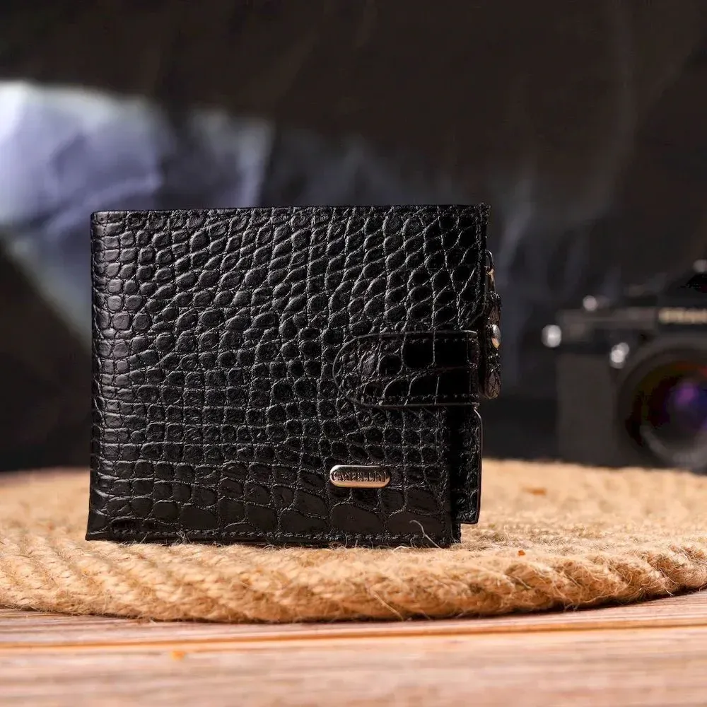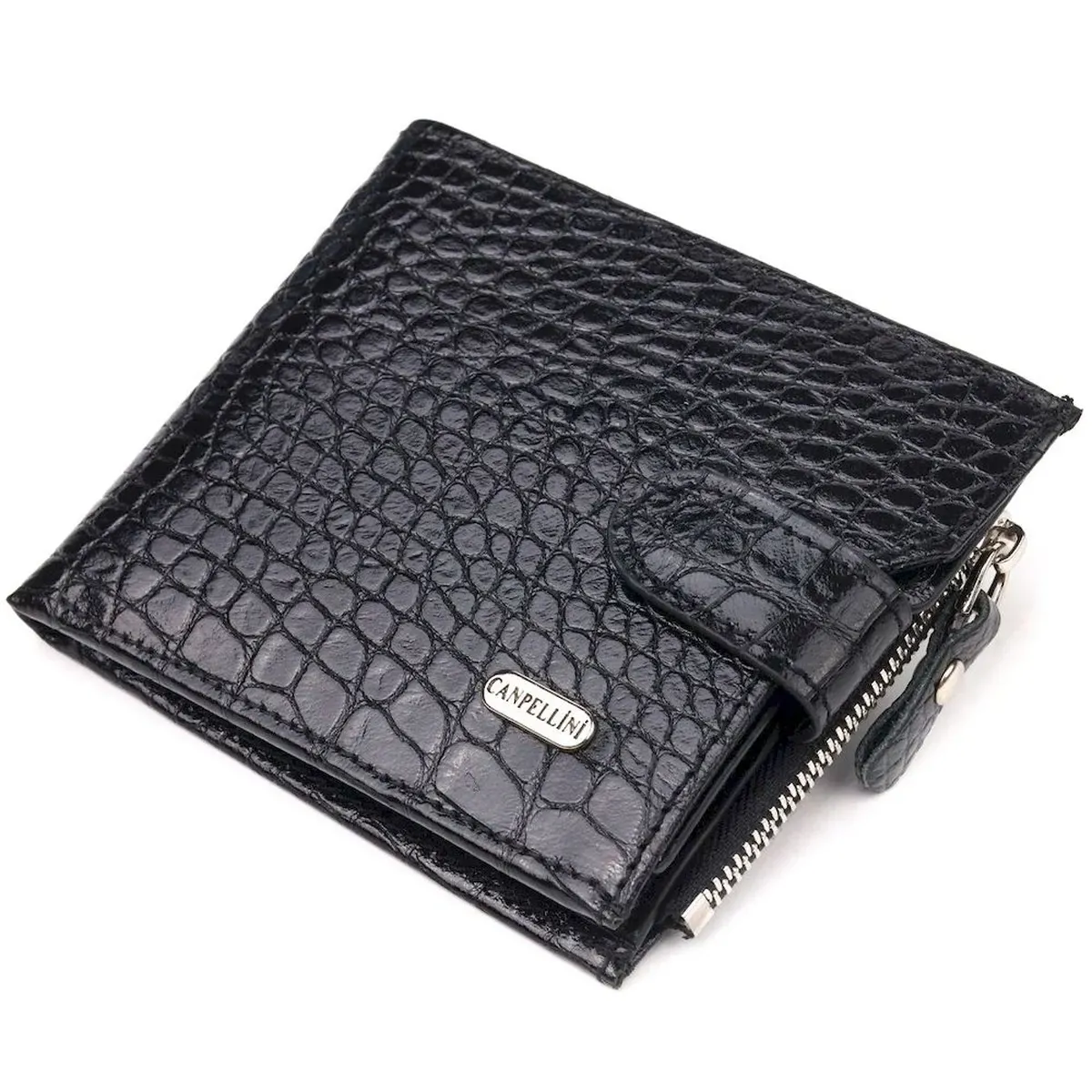 Мужской горизонтальный кошелек из натуральной фактурной кожи CANPELLINI 21504 Черный