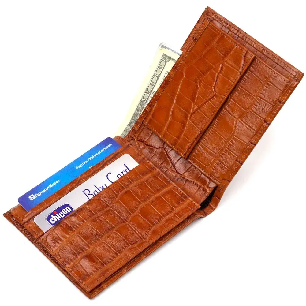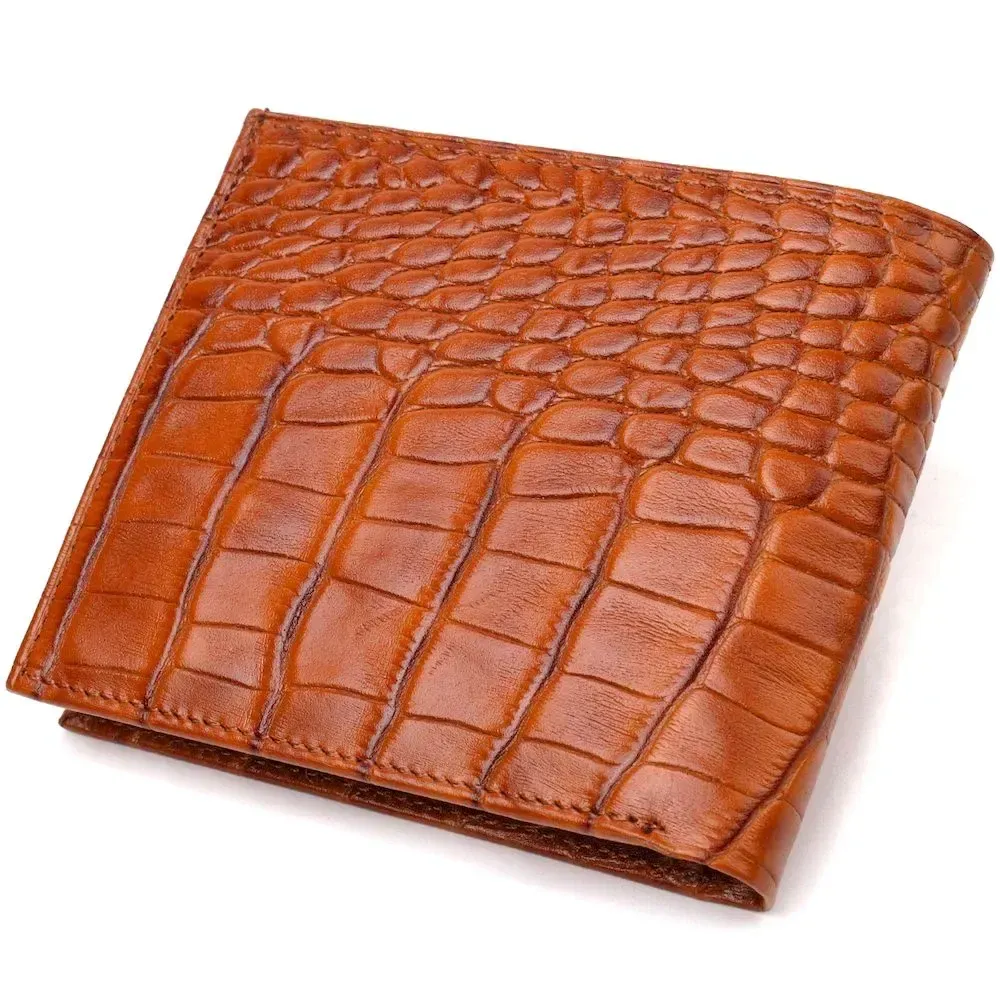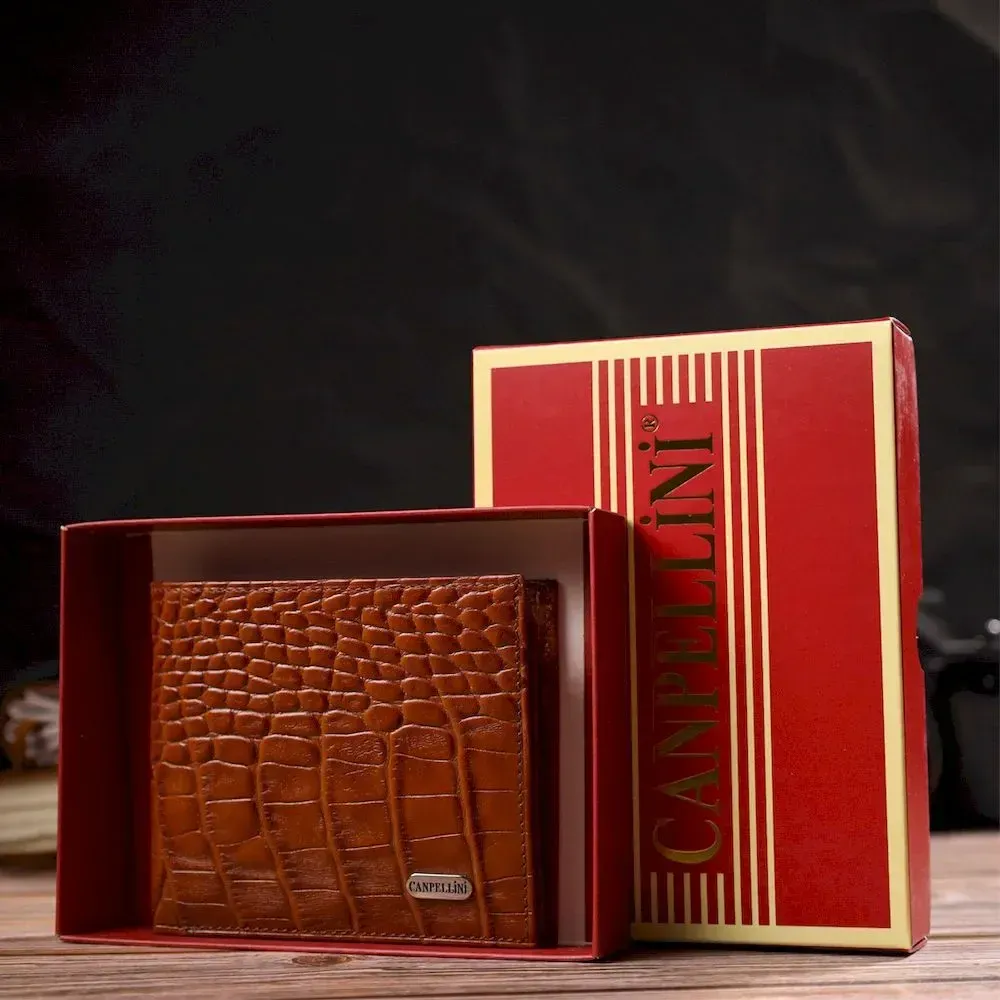 Мужской горизонтальный кошелек из натуральной фактурной кожи с тиснением под крокодила CANPELLINI 21781 Рыжий