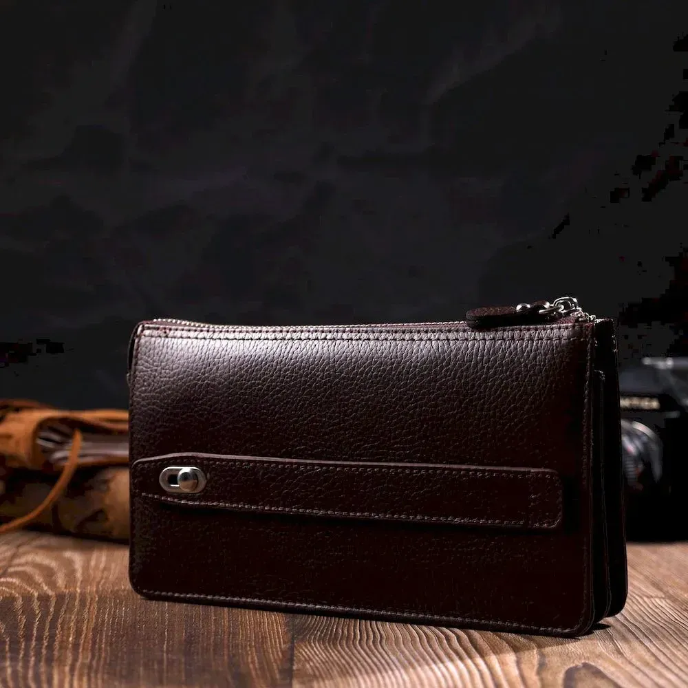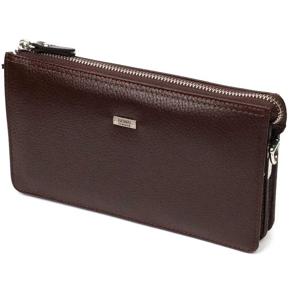 Мужской клатч на два отделения из натуральной кожи флотар BOND 22045 Коричневый