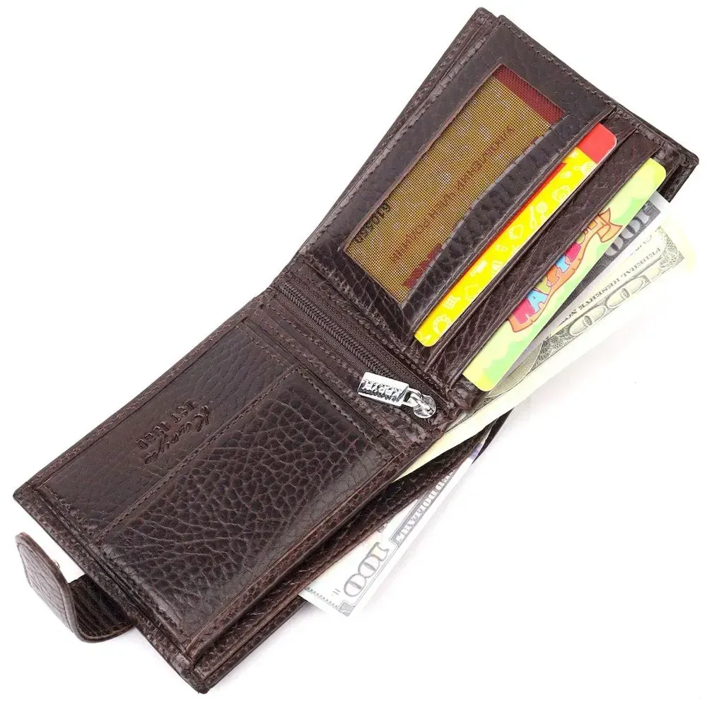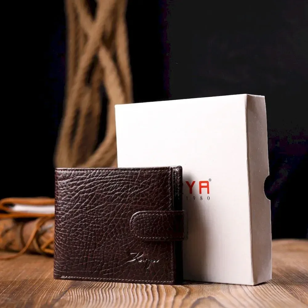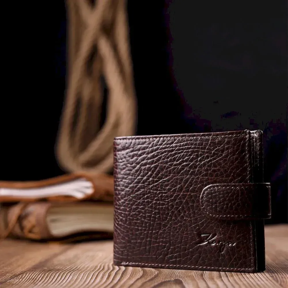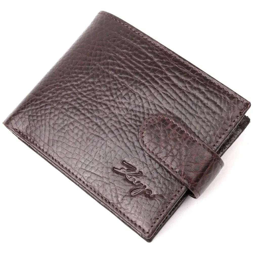 Мужской кошелек с хлястиком из натуральной кожи KARYA 21076 Коричневый