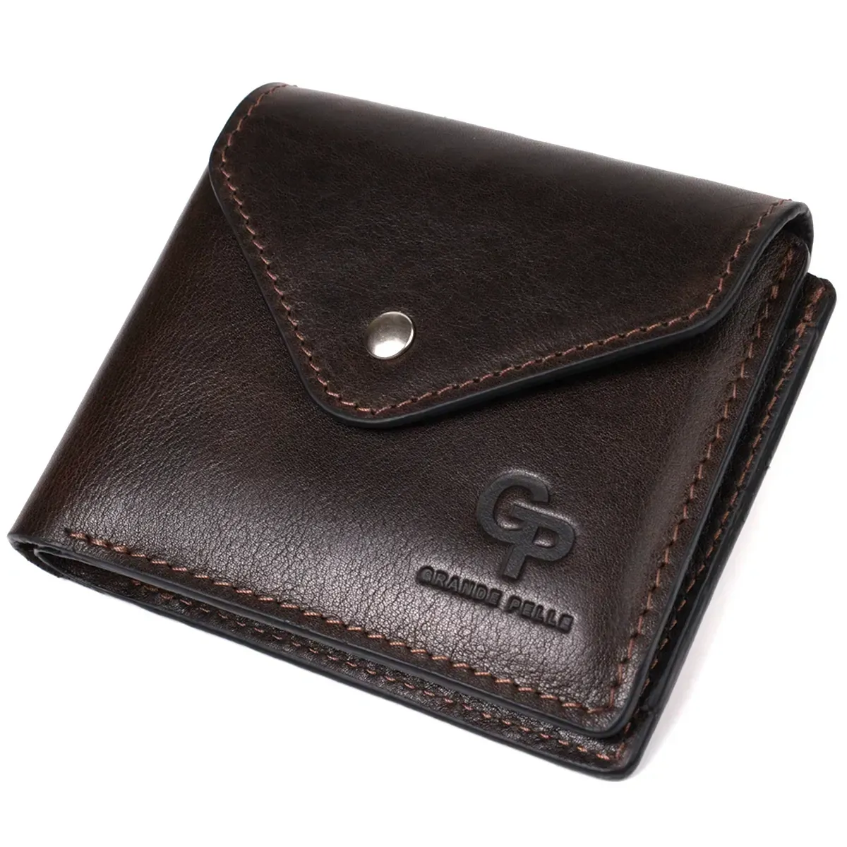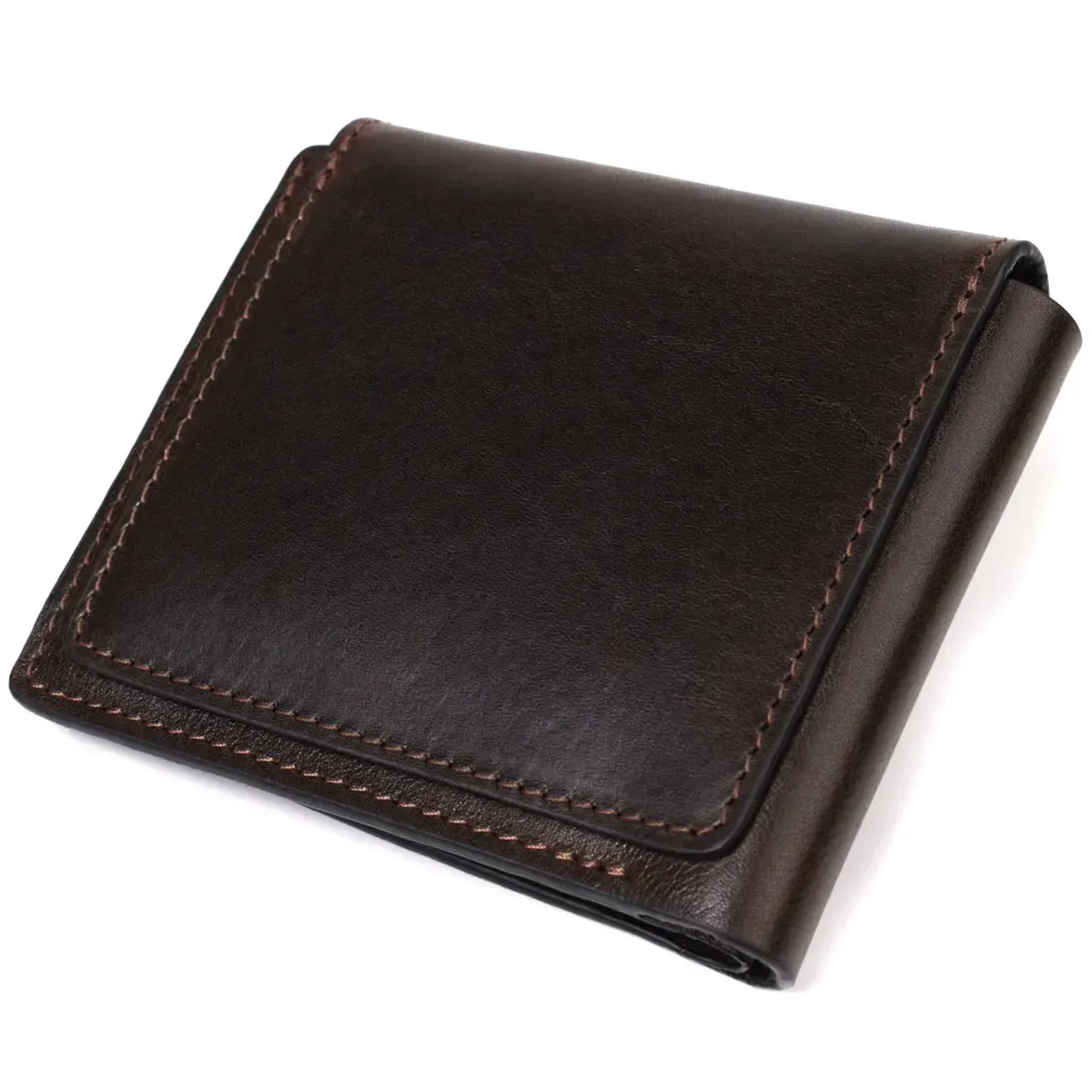 Стильное мужское горизонтальное портмоне, которое изготовлено только из натуральной кожи высочайшего качества, без тканевой подкладки. Изделие выполнено в гладкой коже, которое красиво переливается на солнце. Фишкой этого кошелька является треугольный клапан сверху, на который закрывается аксессуар. Данное портмоне идеальный вариант для современного человека, который предпочитает носить минимум наличных и выбирает карточки. Портмоне упаковано в фирменную коробку. Данное портмоне станет лучшим подарком для ваших близких.