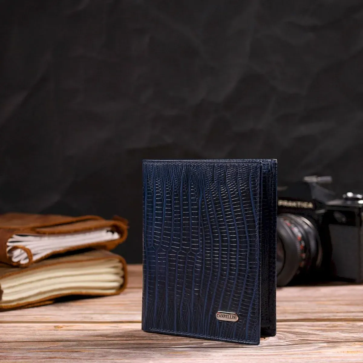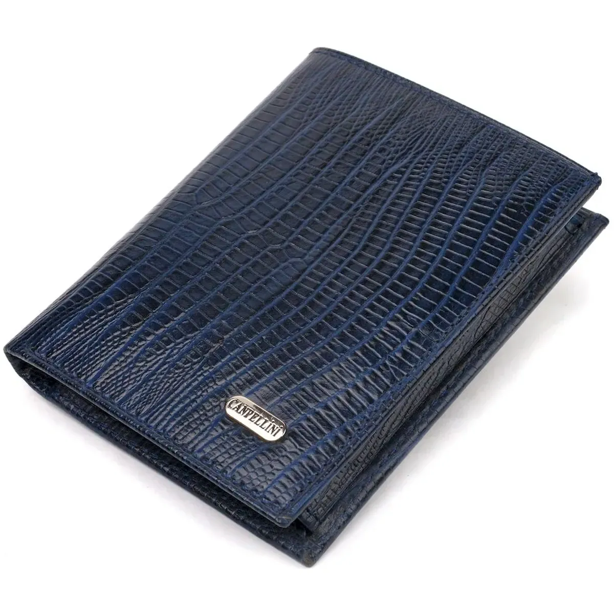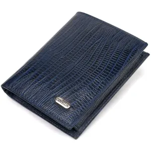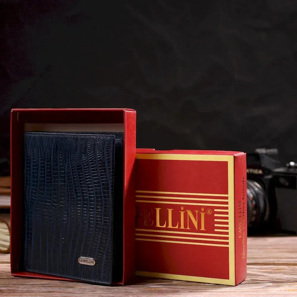 Мужской кошелек вертикального формата из натуральной кожи с тиснением CANPELLINI 21752 Синий