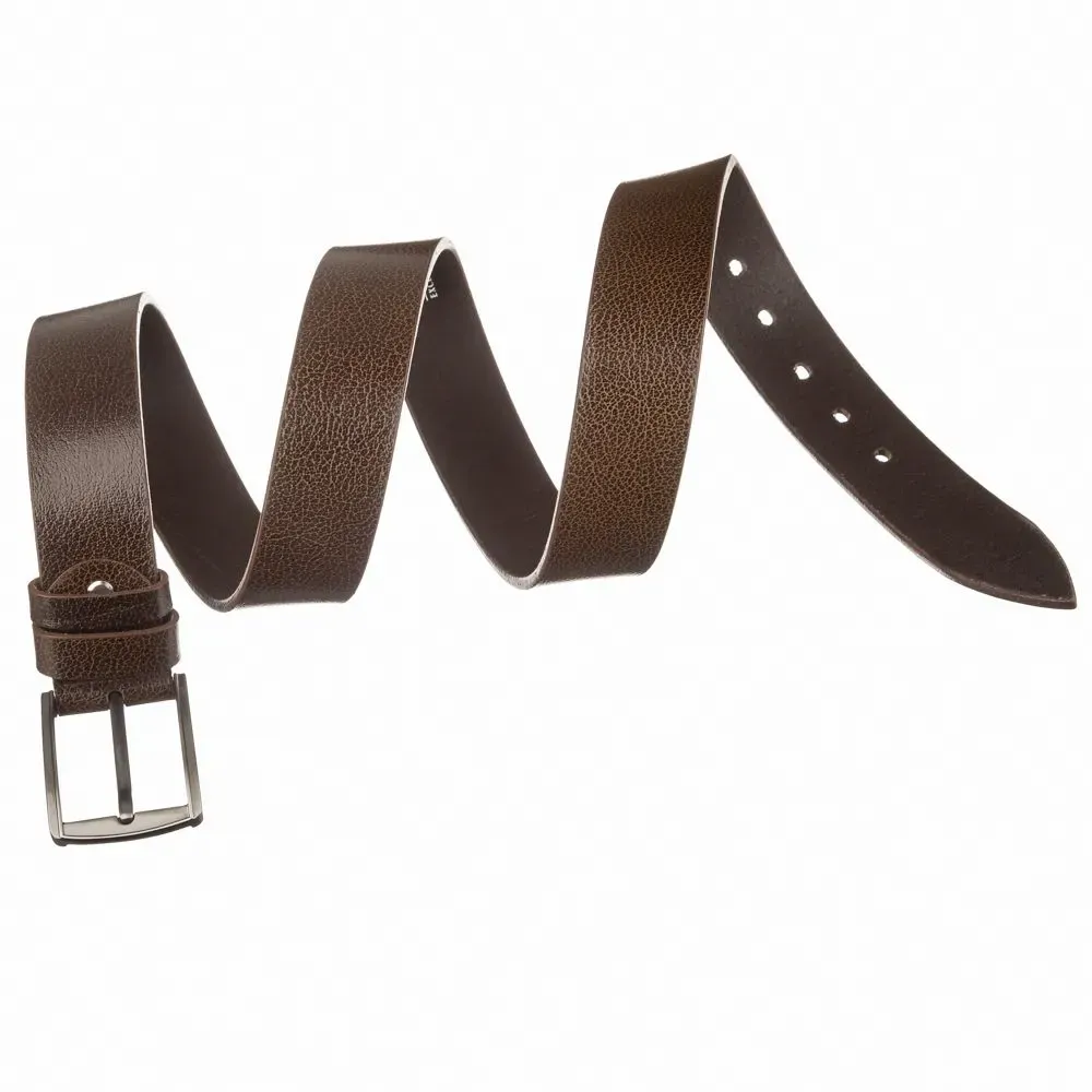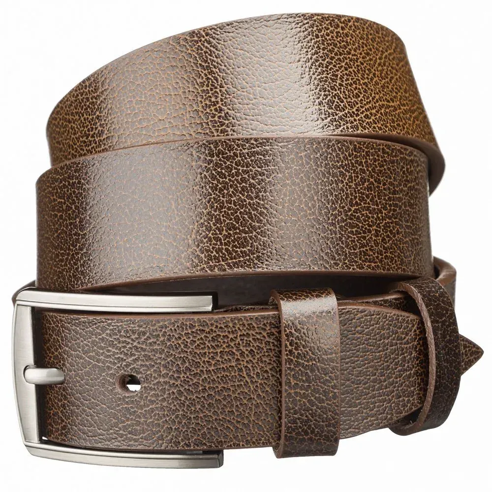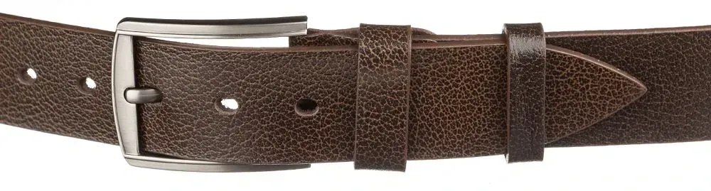 Надежный ремень под джинсы с классической матовой пряжкой. Изделие изготовлено из качественной натуральной кожи, этот ремень станет Вашим любимым аксессуаром не только благодаря стильному добротному виду, но и также благодаря своей прочности и износостойкости. Если Вы не знаете, что подарить мужчине, то этот ремень отличное решение, в качестве можно не сомневаться