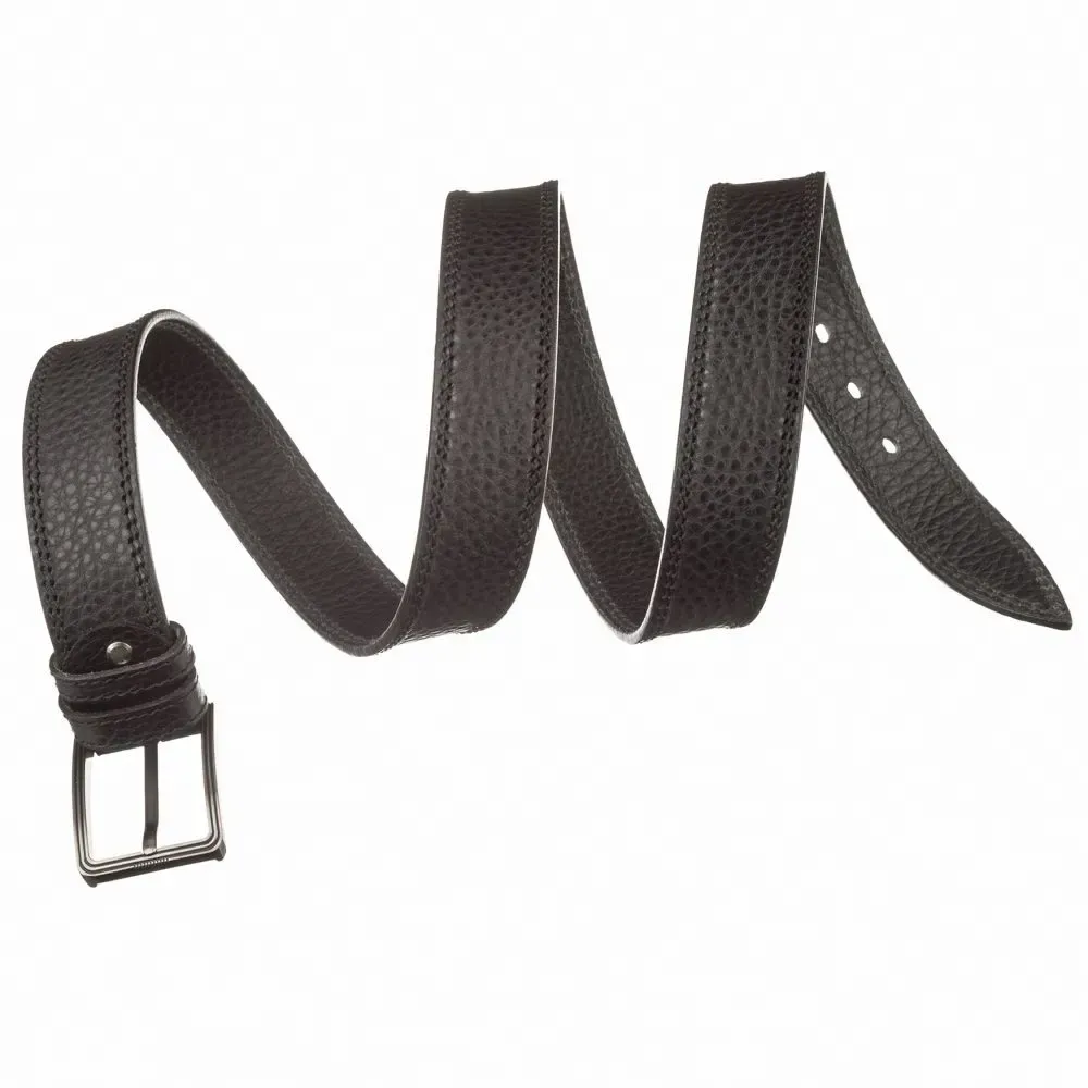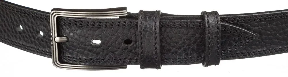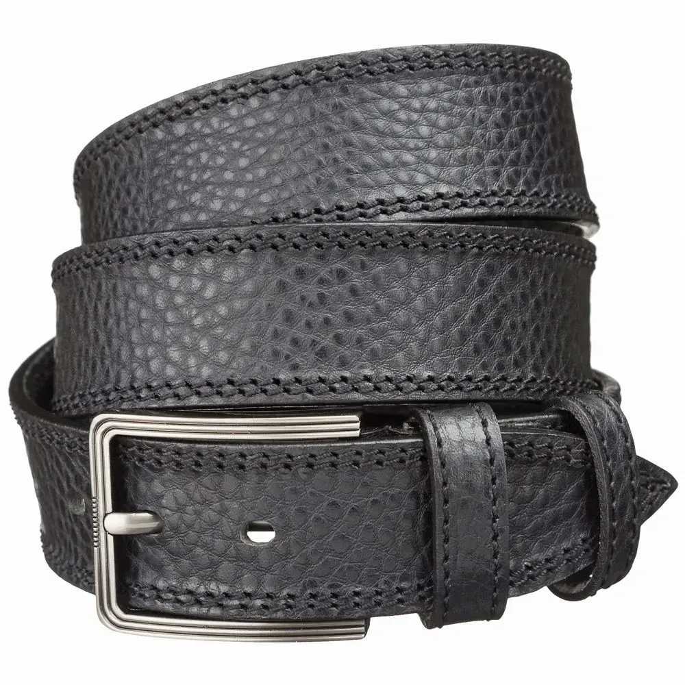 Черный джинсовый ремень из фактурной натуральной кожи, который выглядит очень стильно и элегантно. Аксессуар прошит двойной черной строчкой в тон изделия, что добавляет ему оригинальности. Пряжка ремня выполнена в классическом стиле. Благодаря отличному качеству модель долго послужит своему владельцу и не потеряет внешний вид.