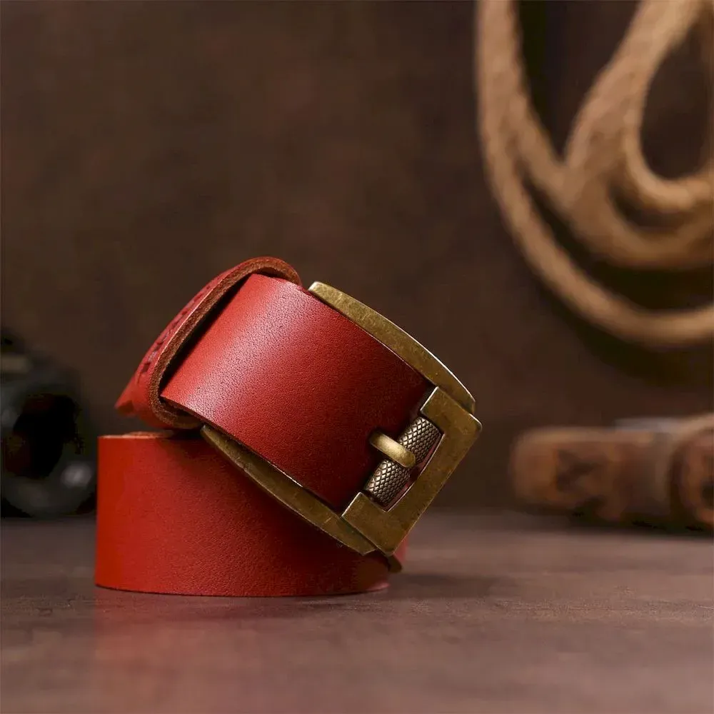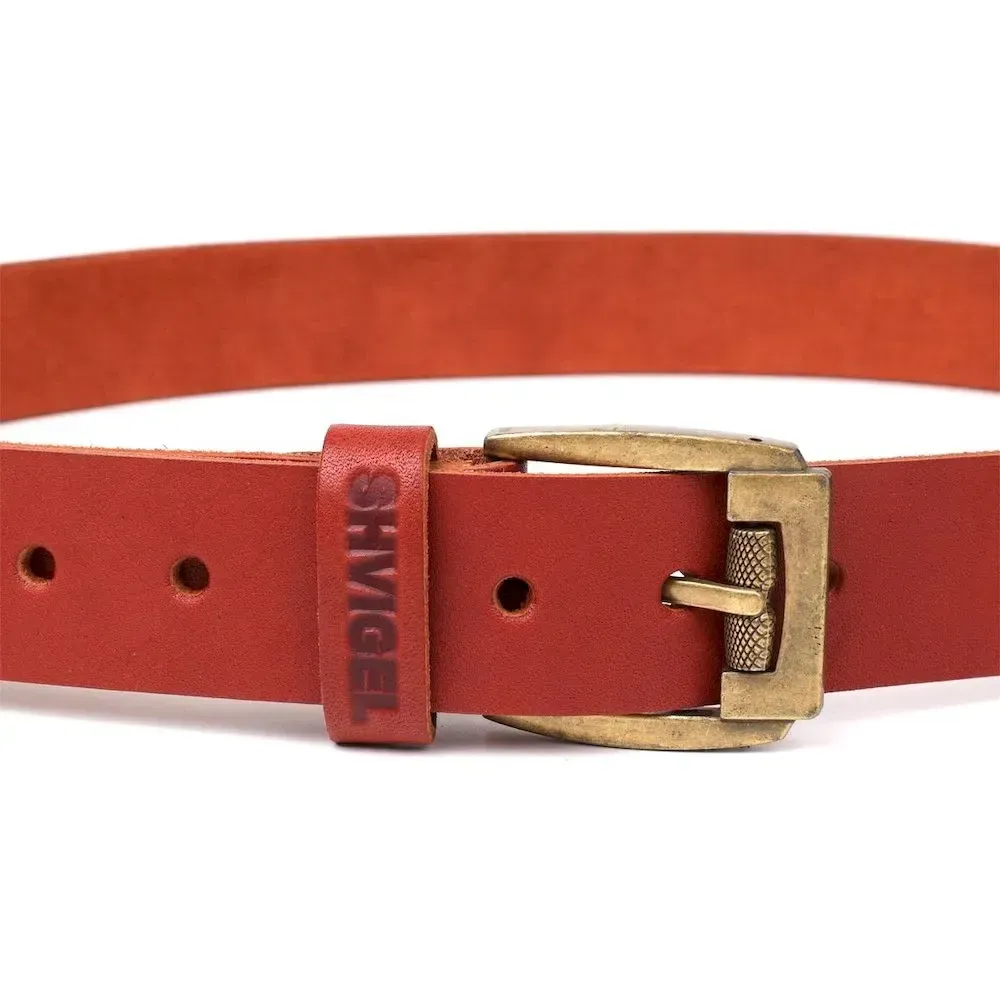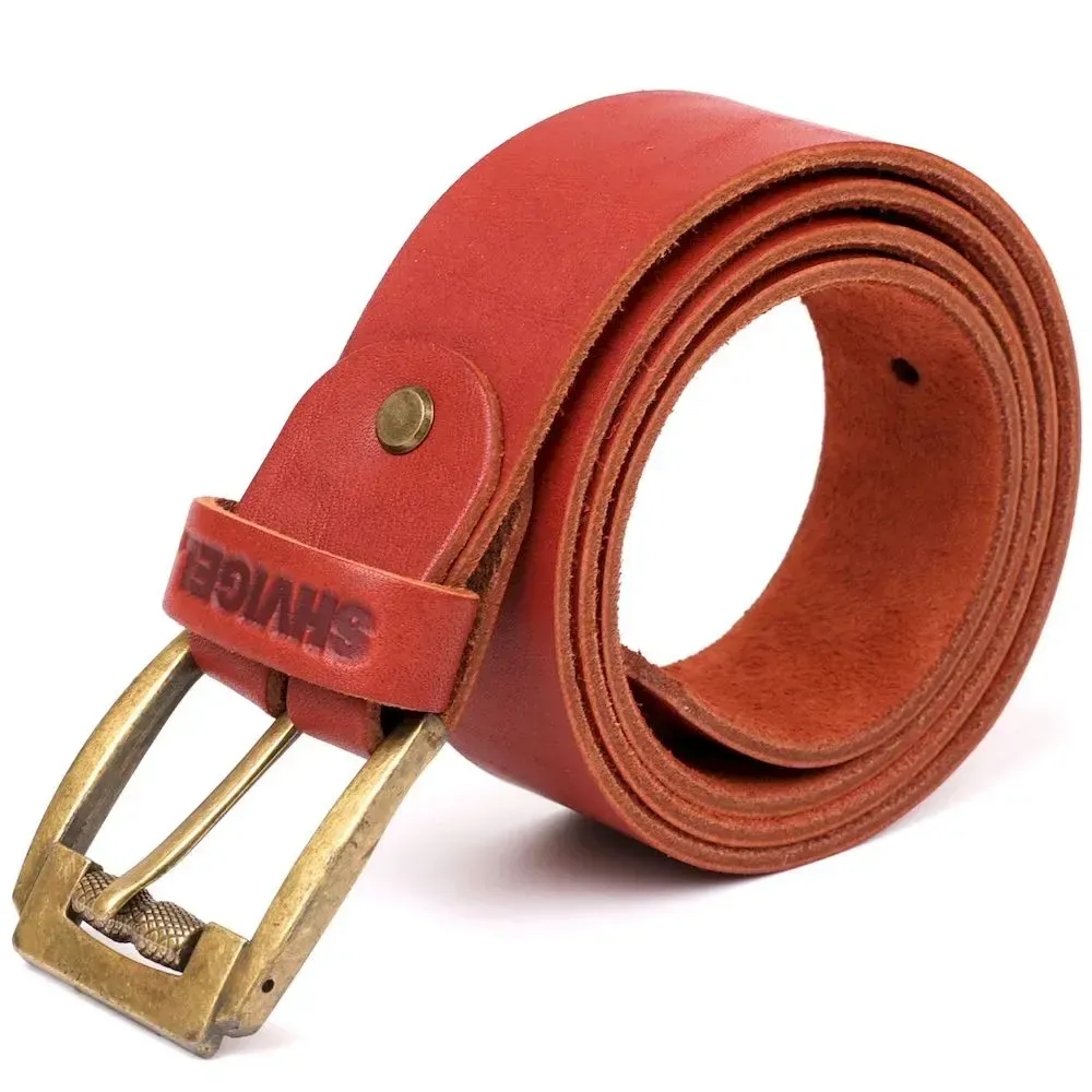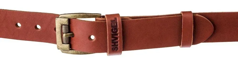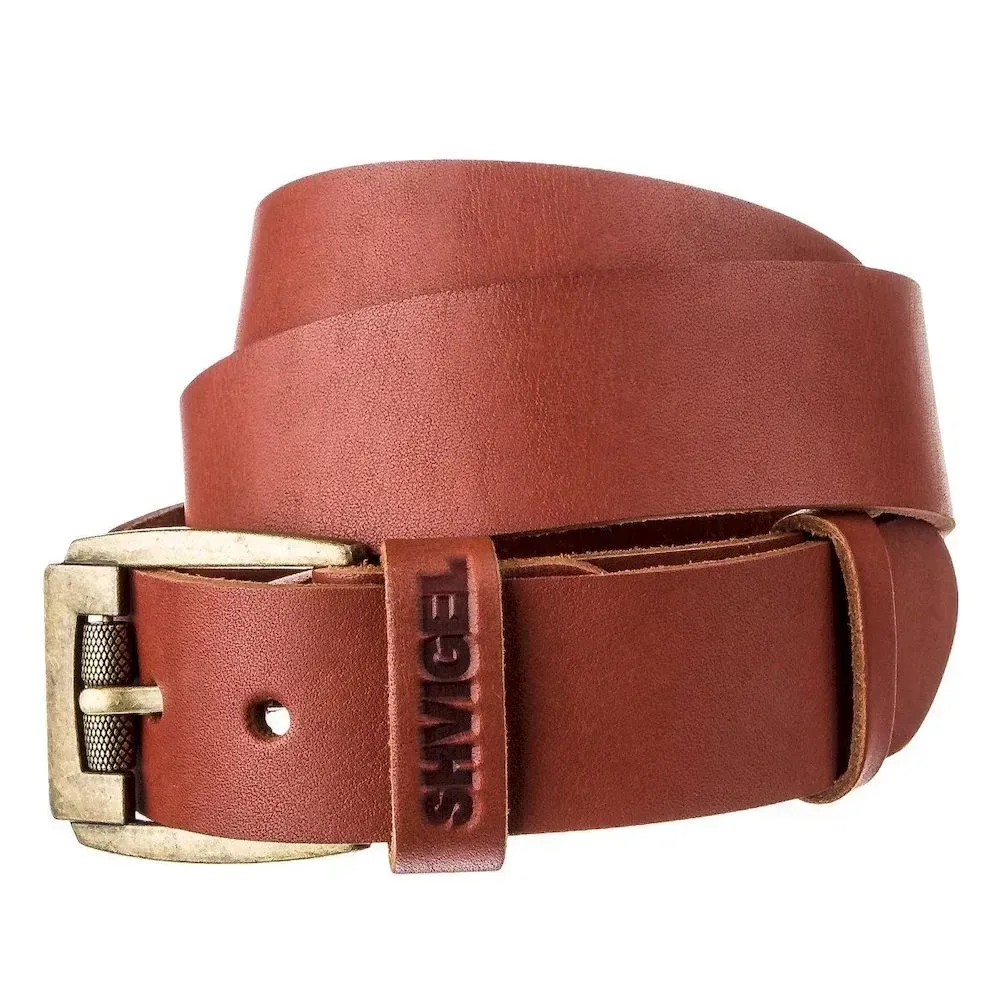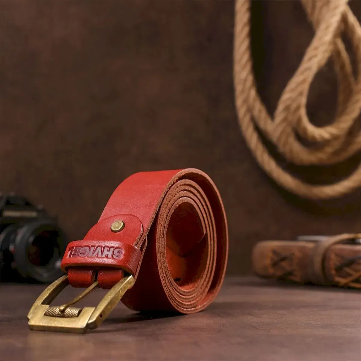 Мужской ремень кожаный с массивной пряжкой SHVIGEL 13995 Кирпичный