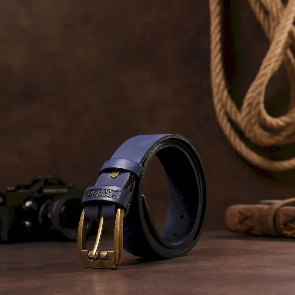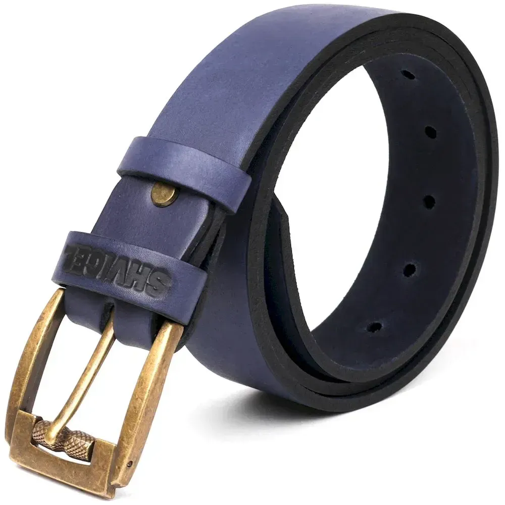 Мужской ремень SHVIGEL 11258 кожаный Синий