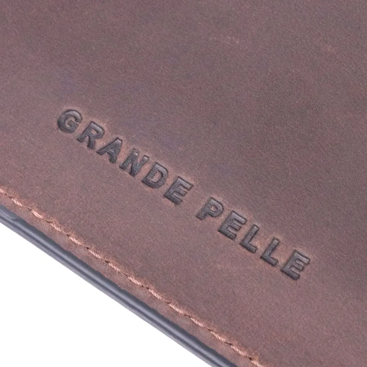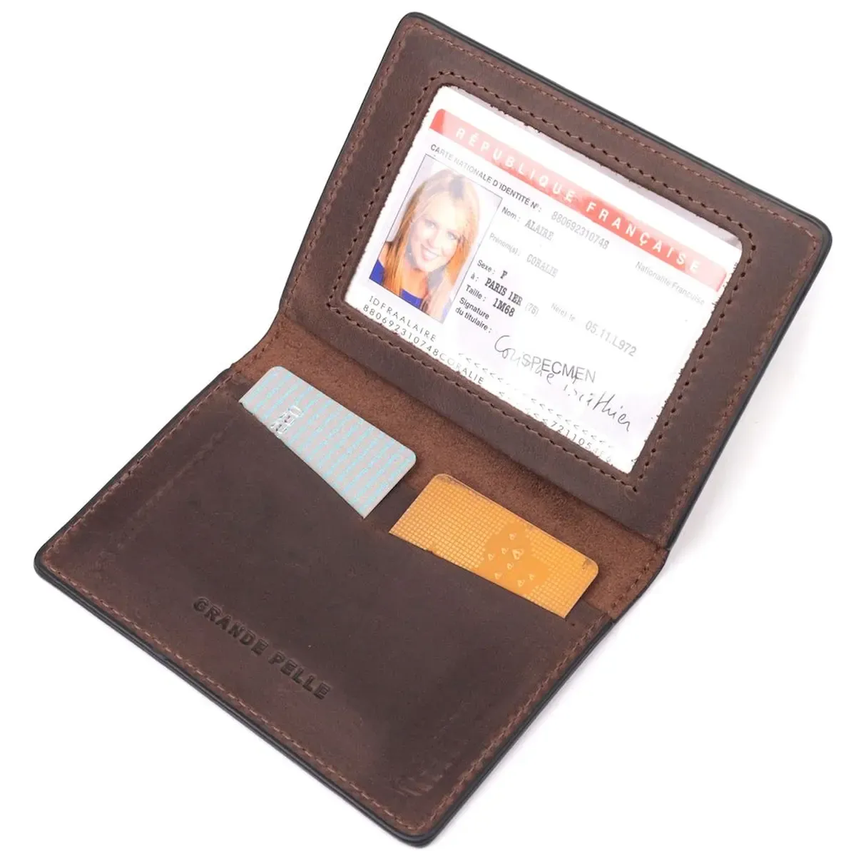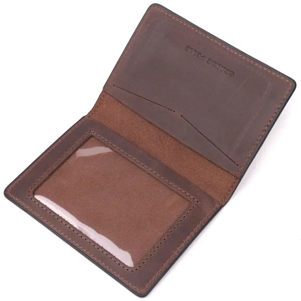 Надежная обложка из винтажной кожи на военный билет Тризуб ЗСУ GRANDE PELLE 16752 Коричневая