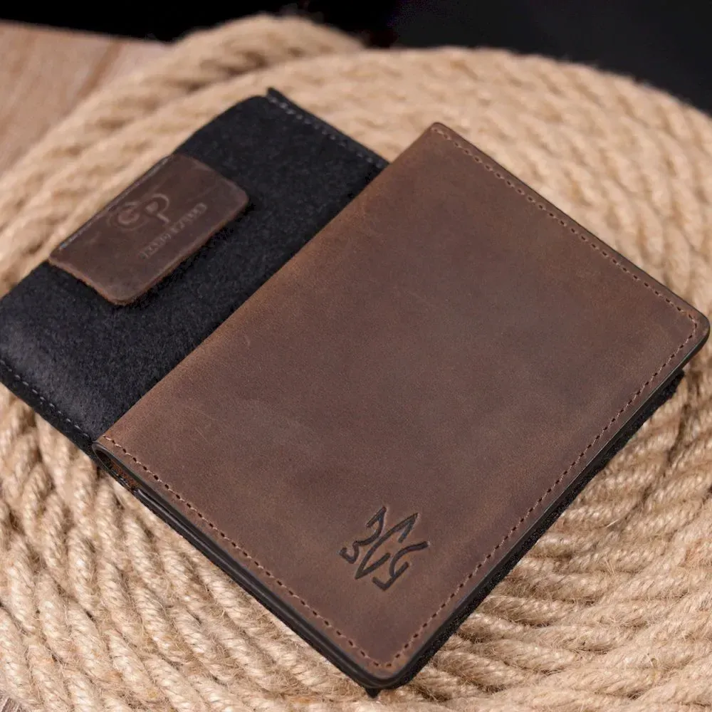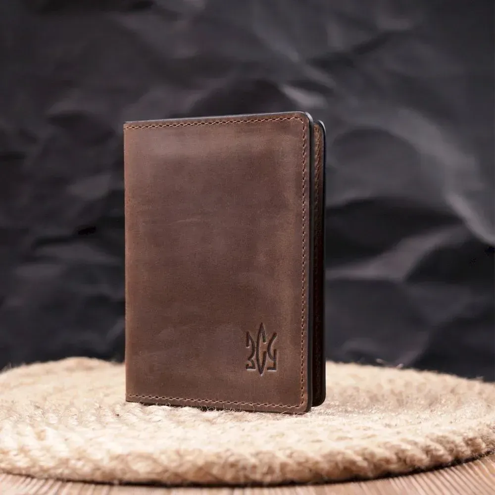 Отличная кожанная обложка для военного билета, коричневого цвета с патриотическим тиснением “ЗСУ” в виде герба Украины , на лицевой стороне. Изделие пошито с качественной итальянской винтажной кожи с высоким показателем износостойкости, которая защитит от повреждений документ на очень долгое время. По краям модель прошита коричневой строчкой в дизайн изделия. Аксессуар имеет разворот для военного билета, две ячейки для карточек, без застежки, упакован в фирменный чехол.