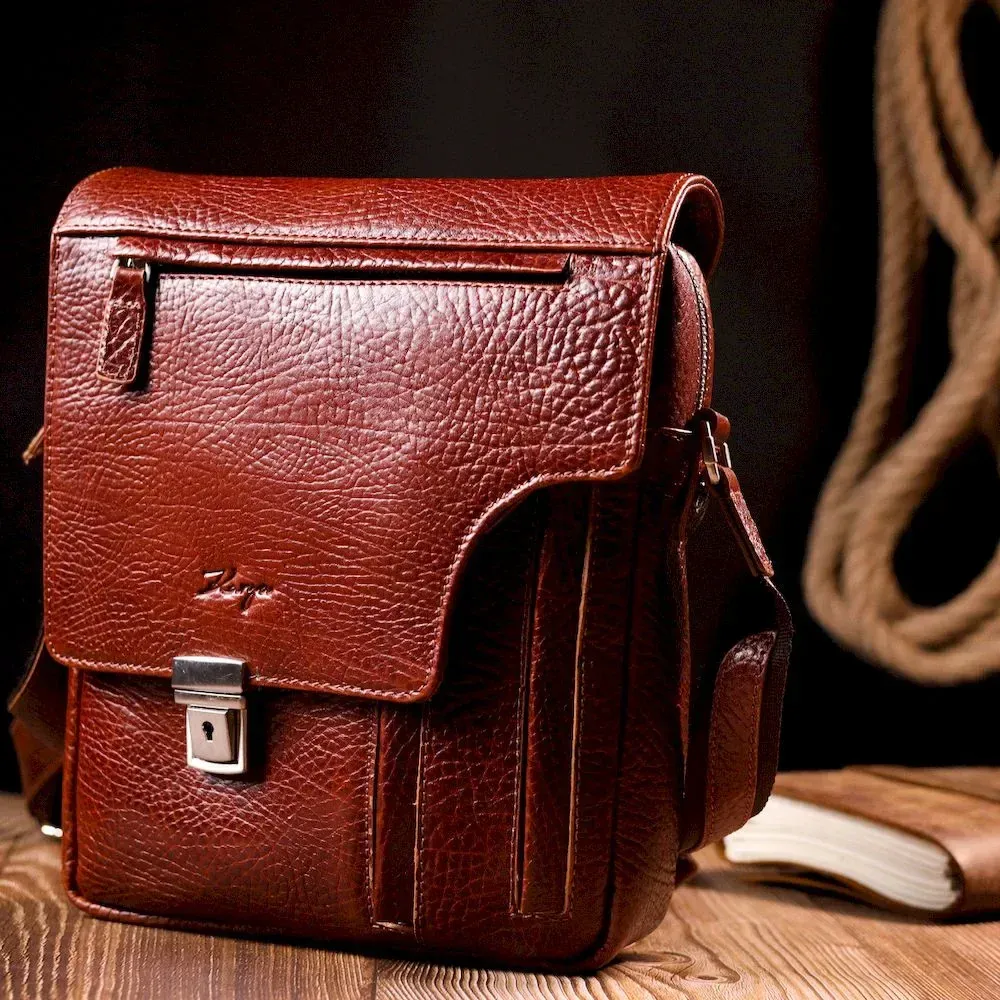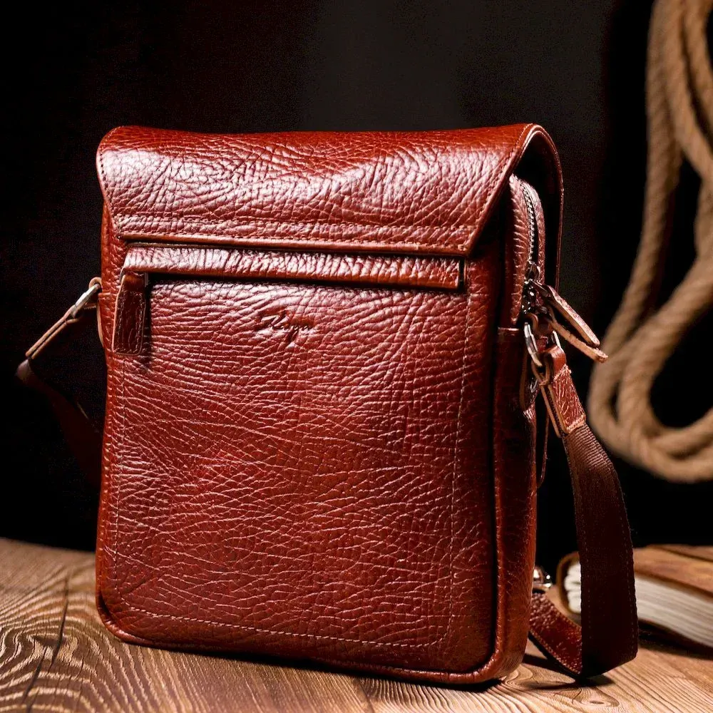 Мужская сумка через плечо Karya выполнена из натуральной зернистой кожи. Удобная и многофункциональная модель. Отличный вариант на каждый день. Качественная кожа устойчива к износам и долго носится и выглядит она очень эффектно. Модель дополнена фурнитурой цвета серебра. Внутри сумки качественная подкладка. Будет идеальным вариантом для подарка близкому человеку.