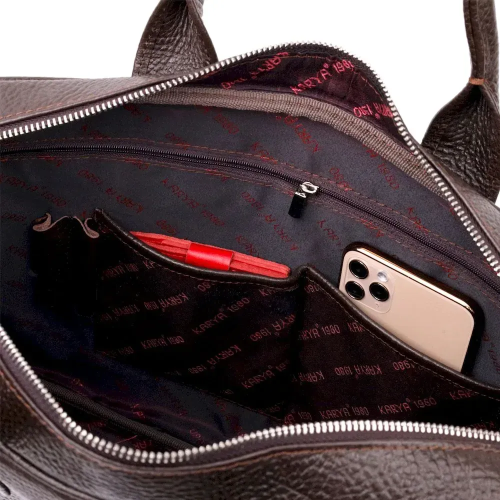 Надежная сумка-портфель на плечо KARYA 20874 кожаная Коричневый