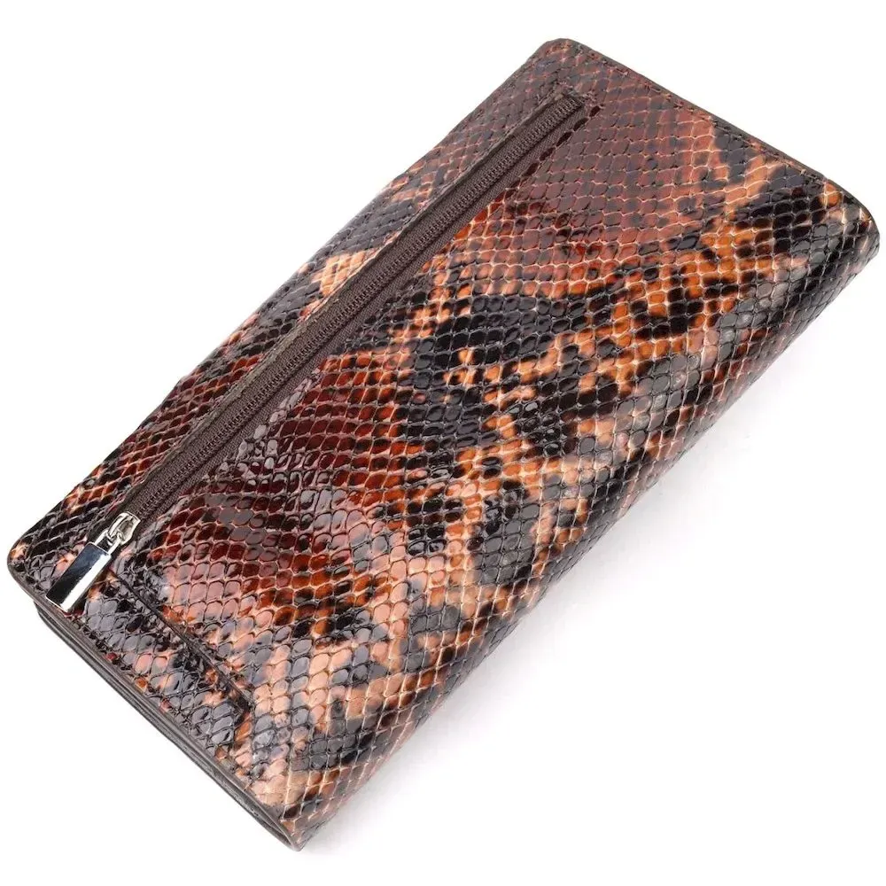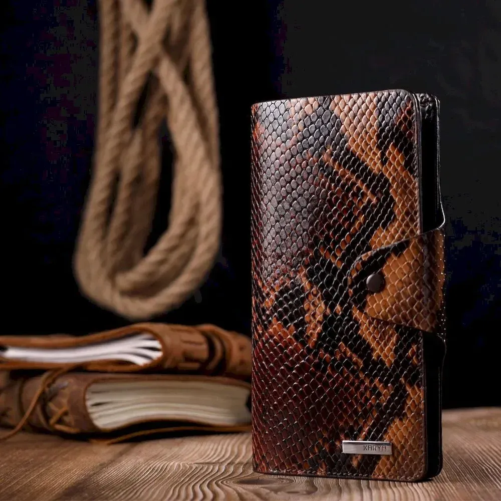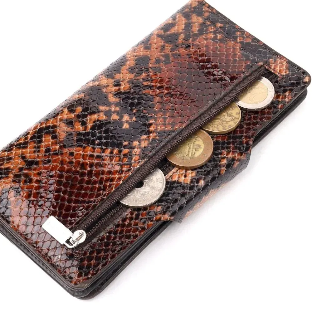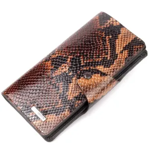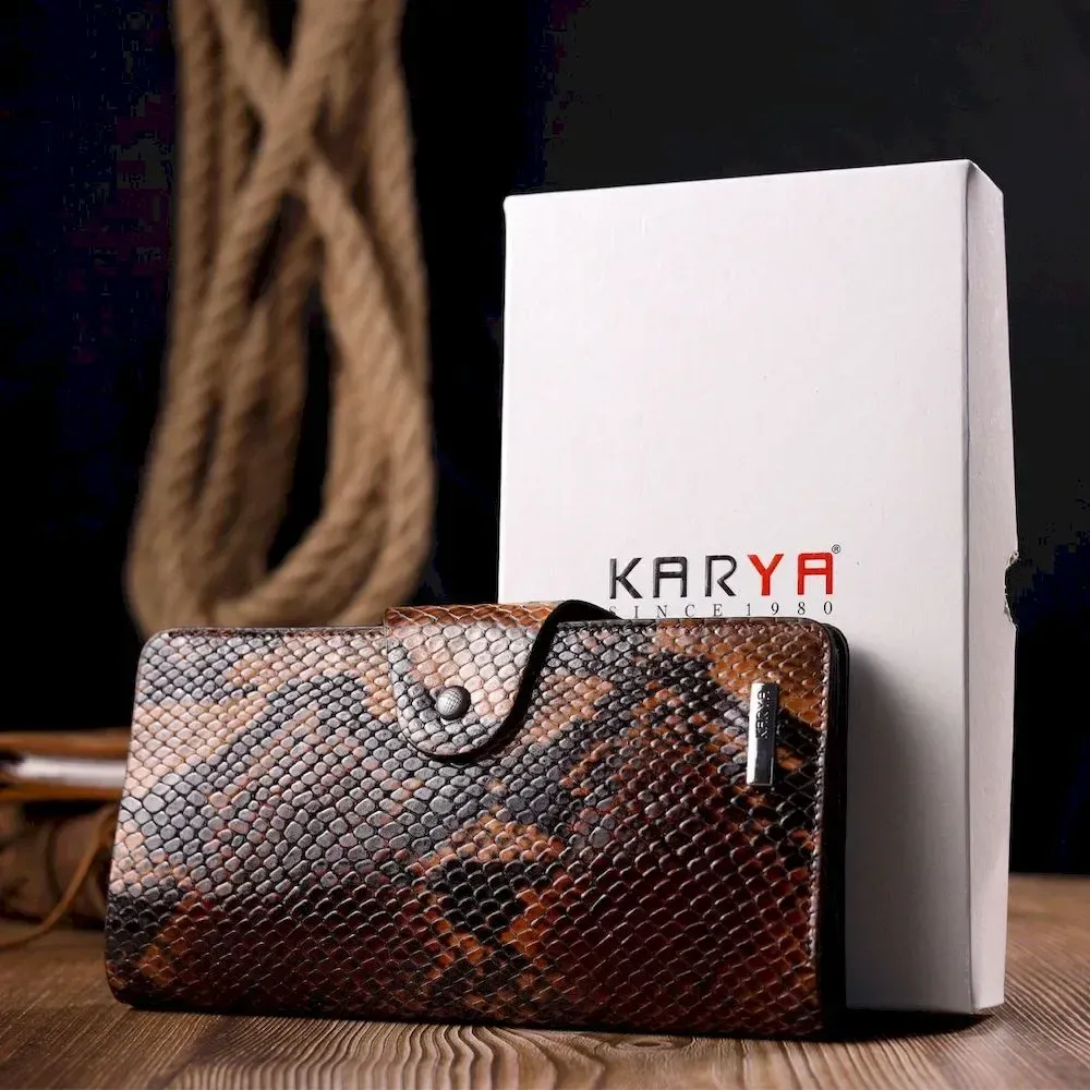 Надежное женское портмоне из натуральной фактурной кожи под змею KARYA 21005 Коричневый