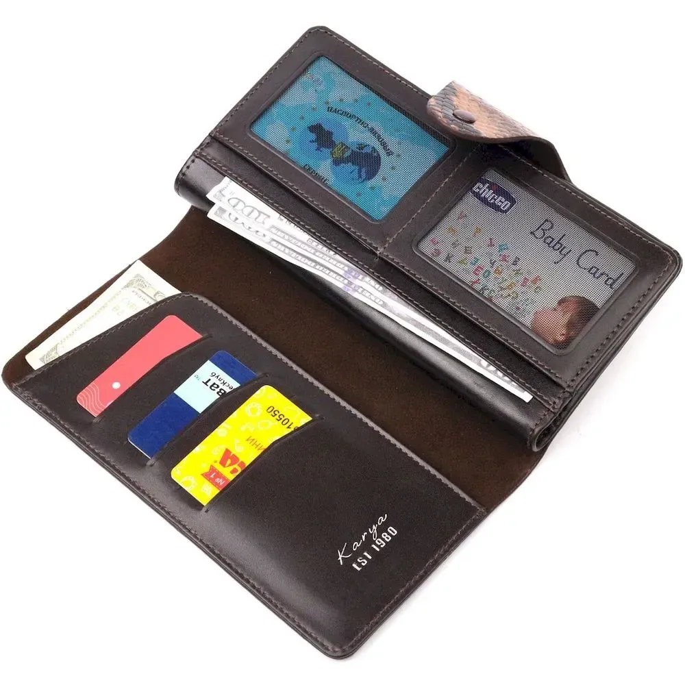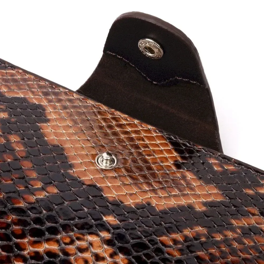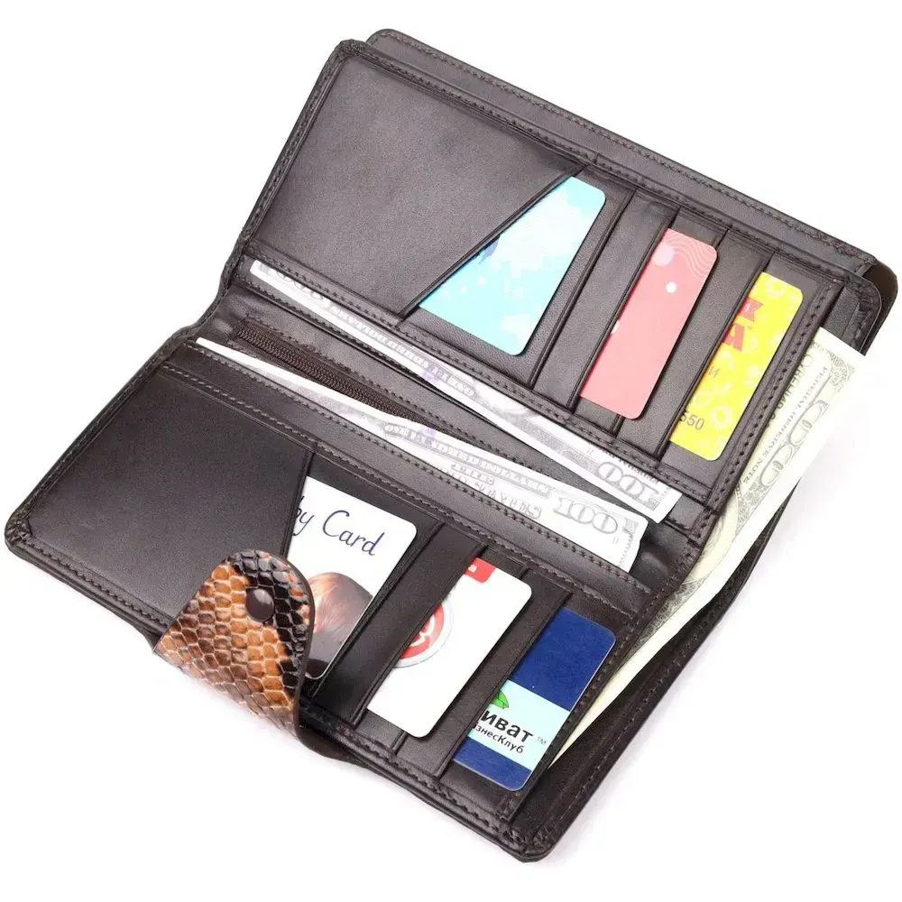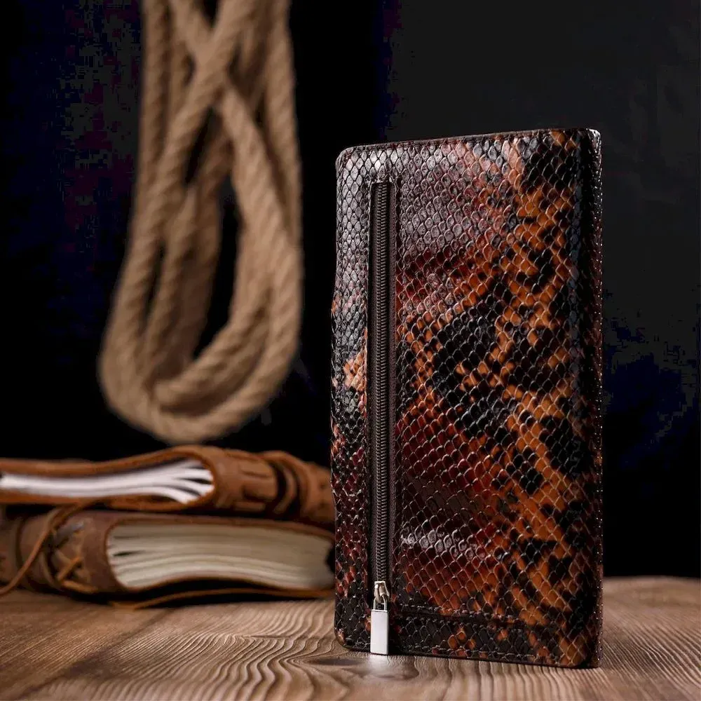 Надежное женское портмоне из натуральной фактурной кожи под змею KARYA 21005 Коричневый