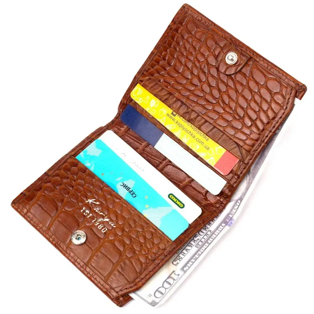 Надежный мужской кошелек из фактурной кожи под рептилию KARYA 21058 Коричневый