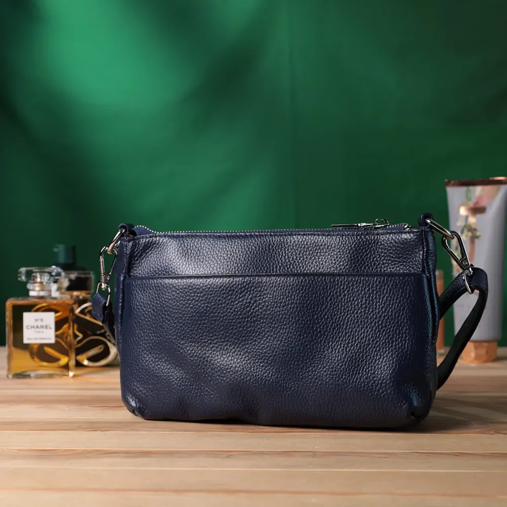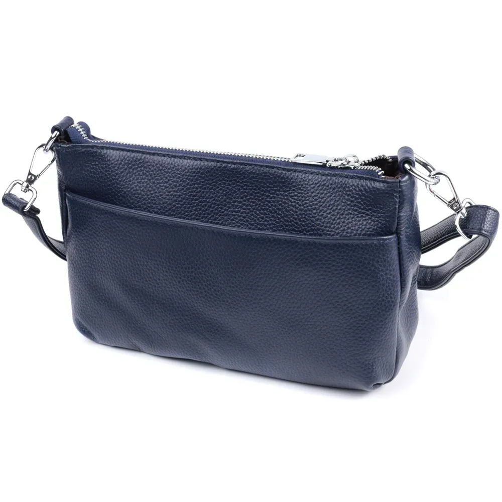 Надійна сумка для жінок на три відділення з натуральної шкіри Vintage 22806 Синій